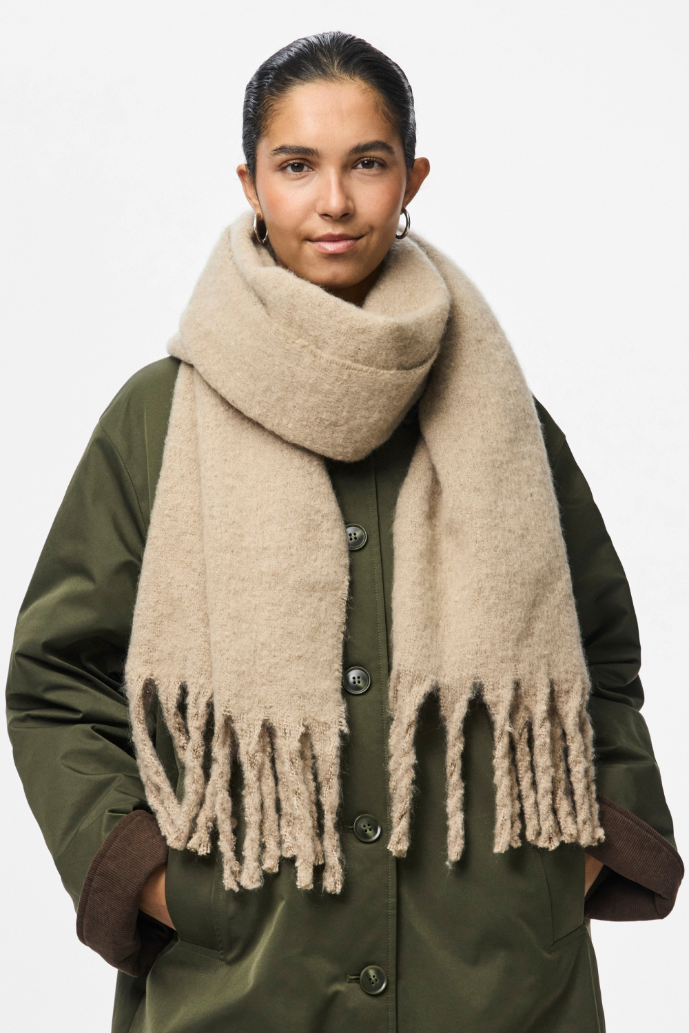 Of je nu een boswandeling maakt of de stad in gaat, deze sjaal biedt je de nodige warmte en stijl. De normale lengte maakt hem veelzijdig genoeg om op verschillende manieren te dragen, van nonchalant gedrapeerd tot netjes geknoopt. Met zijn tijdloze design blijft de sjaal van Pieces een favoriet in je collectie, en zorgt hij ervoor dat je modieus voor de dag komt, ongeacht de gelegenheid. Voeg hem toe aan je outfit voor een subtiele, maar stijlvolle aanvulling.