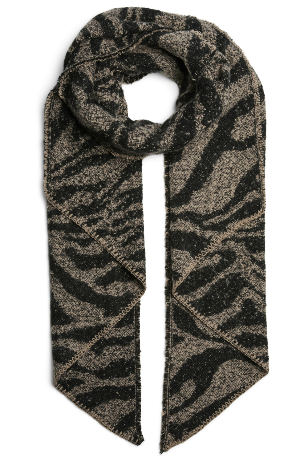 Deze grafische sjaal van Pieces is een stijlvolle keuze voor de winter. Gemaakt van 100% gerecycled polyester, biedt de sjaal een duurzame toevoeging aan je garderobe. Het markante zwart-beige patroon geeft een moderne draai aan je winteroutfits, terwijl de knitwear-stijl zorgt voor extra warmte en comfort. Met een normale lengte is deze sjaal ideaal voor dagelijks gebruik en kan hij gemakkelijk gecombineerd worden met verschillende jassen en accessoires.