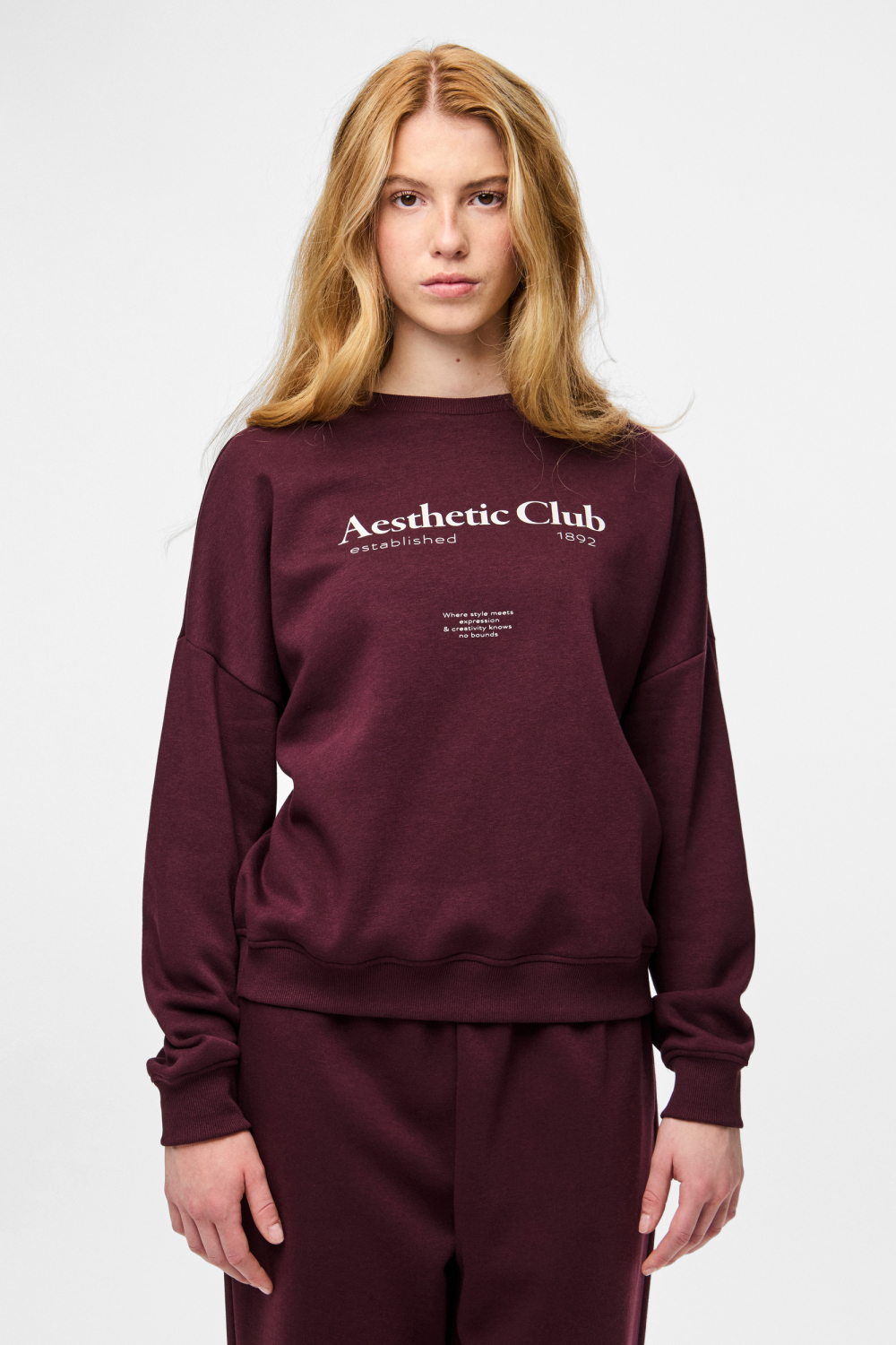 Deze casual sweater van Pieces is een ideale keuze voor de koude wintermaanden. Met een rijke bordeauxrode kleur en een opvallend 'Aesthetic Club' patroon op de voorzijde, voeg je gemakkelijk een vleugje stijl toe aan je dagelijkse outfit. De ronde hals en lange mouwen bieden extra comfort en warmte, terwijl de regular fit ervoor zorgt dat je je altijd op je gemak voelt. Gemaakt van een duurzame mix van 50% katoen en 50% gerecycled polyester, waardoor het niet alleen modieus is maar ook een bewuste keuze. Draag deze Pieces sweater bij diverse gelegenheden, of het nu gaat om een relaxte dag thuis of een informele afspraak met vrienden. De normale lengte maakt hem gemakkelijk te combineren met een jeans of joggingbroek voor een nonchalante look. Of je nu naar buiten gaat op een frisse dag of binnen blijft voor een gezellige avond, deze sweater biedt precies de juiste balans tussen stijl en comfort. Voeg dit veelzijdige kledingstuk toe aan je wintergarderobe en geniet van de zachte stof en het eigentijdse design.