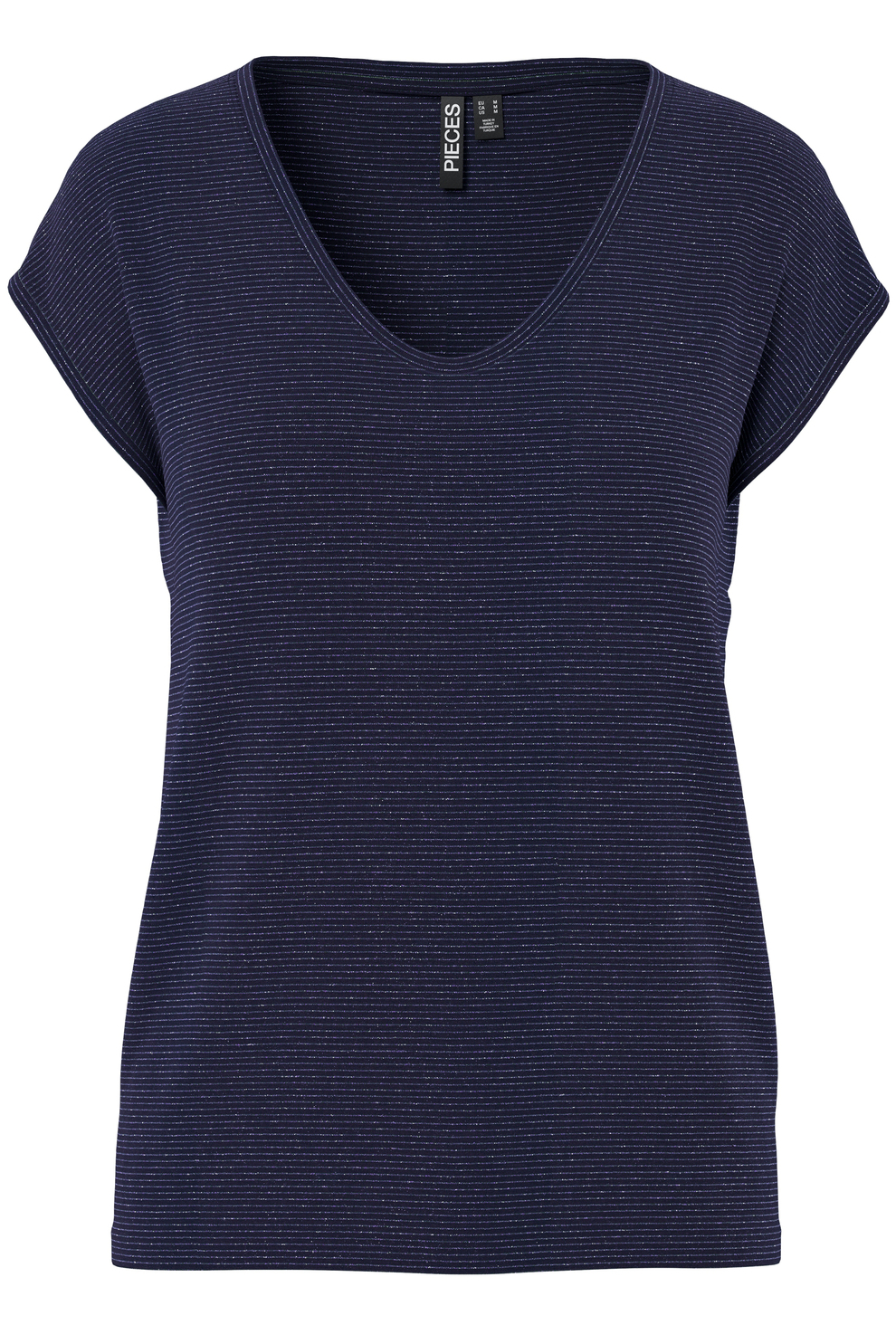 Het Pieces T-shirt voor dames is een casual item dat gemakkelijk jouw zomergarderobe aanvult. Met een regular fit pasvorm en een elegante V-hals ontwerp, straalt dit T-shirt zowel stijl als comfort uit. Gemaakt met 85% viscose, 10% metaalgaren en 5% elastan, biedt het een lichte en ademende stof die ideaal is voor warmere dagen. De korte mouwen en normale lengte maken het precies goed voor tijdens een wandeling door het park of een ontspannen lunch met vrienden. Dit T-shirt in de kleur Sky Captain is voorzien van subtiele glitters, wat een speelse touch geeft aan je dagelijkse look. Perfect te combineren met een jeans voor een nonchalante uitstraling, maar ook stijlvol onder een blazer voor een informele zakelijke setting. De zachte materialensamenstelling zorgt ervoor dat het prettig aanvoelt op de huid, terwijl het stretchy element de pasvorm accentueert. Een veelzijdig stuk dat moeiteloos in verschillende seizoensgebonden looks past.