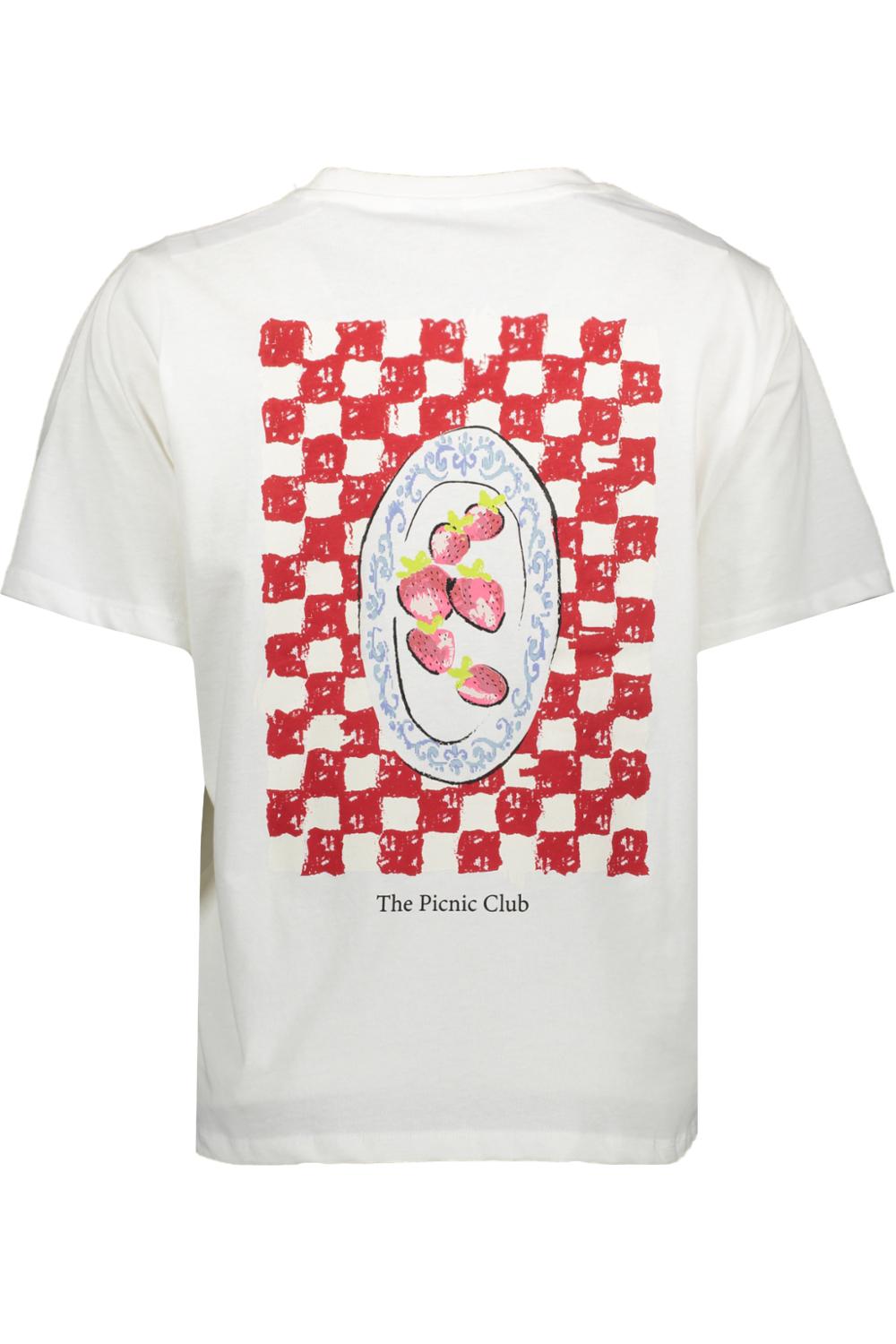 Dit casual dames T-shirt van Pieces voegt een speelse en stijlvolle touch toe aan je zomeroutfit. Gemaakt van 100% katoen, biedt dit shirt een comfortabele en ademende ervaring, ideaal voor warme dagen. De regular fit en ronde halslijn zorgen voor een klassieke, ontspannen uitstraling. De voorzijde van het T-shirt is voorzien van de subtiele tekst "The Picnic Club", wat een hint van exclusiviteit en trendy mode toevoegt aan je look. Aan de achterkant trekt een opvallend grafisch patroon de aandacht. Het kleurrijke ontwerp met een vleugje retro charme maakt het T-shirt perfect voor informele gelegenheden zoals een picknick in het park of een gezellige dag met vrienden. Dit veelzijdige T-shirt matcht gemakkelijk met een spijkerbroek of een lichte short en biedt een combinatie van comfort en stijl die bij elke casual setting past. Voeg dit unieke stuk toe aan je garderobe en geniet van moeiteloze zomerse look.