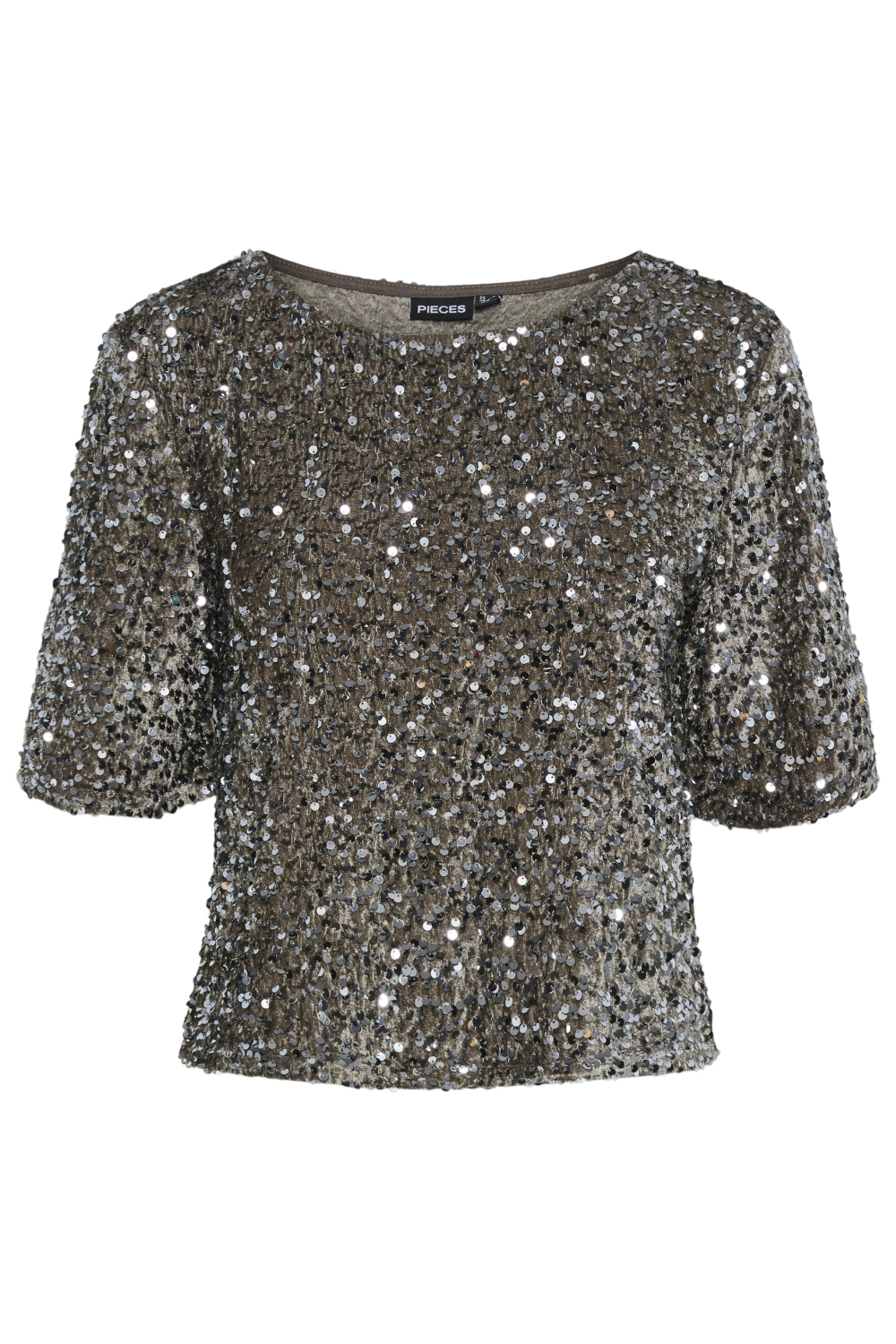 Dankzij de regular fit zit dit T-shirt van Pieces altijd goed, zonder te strak aan te voelen. De sprankelende pailletten maken het een echte blikvanger, perfect te combineren met een elegante zwarte pantalon of een strakke jeans voor een moderne uitstraling. Dit T-shirt past goed in zowel feestelijke settings als voor een informele avond uit met vrienden. Voeg een paar opvallende accessoires toe en je look is compleet. Een veelzijdige aanvulling die niet mag ontbreken in je kledingkast voor speciale momenten.