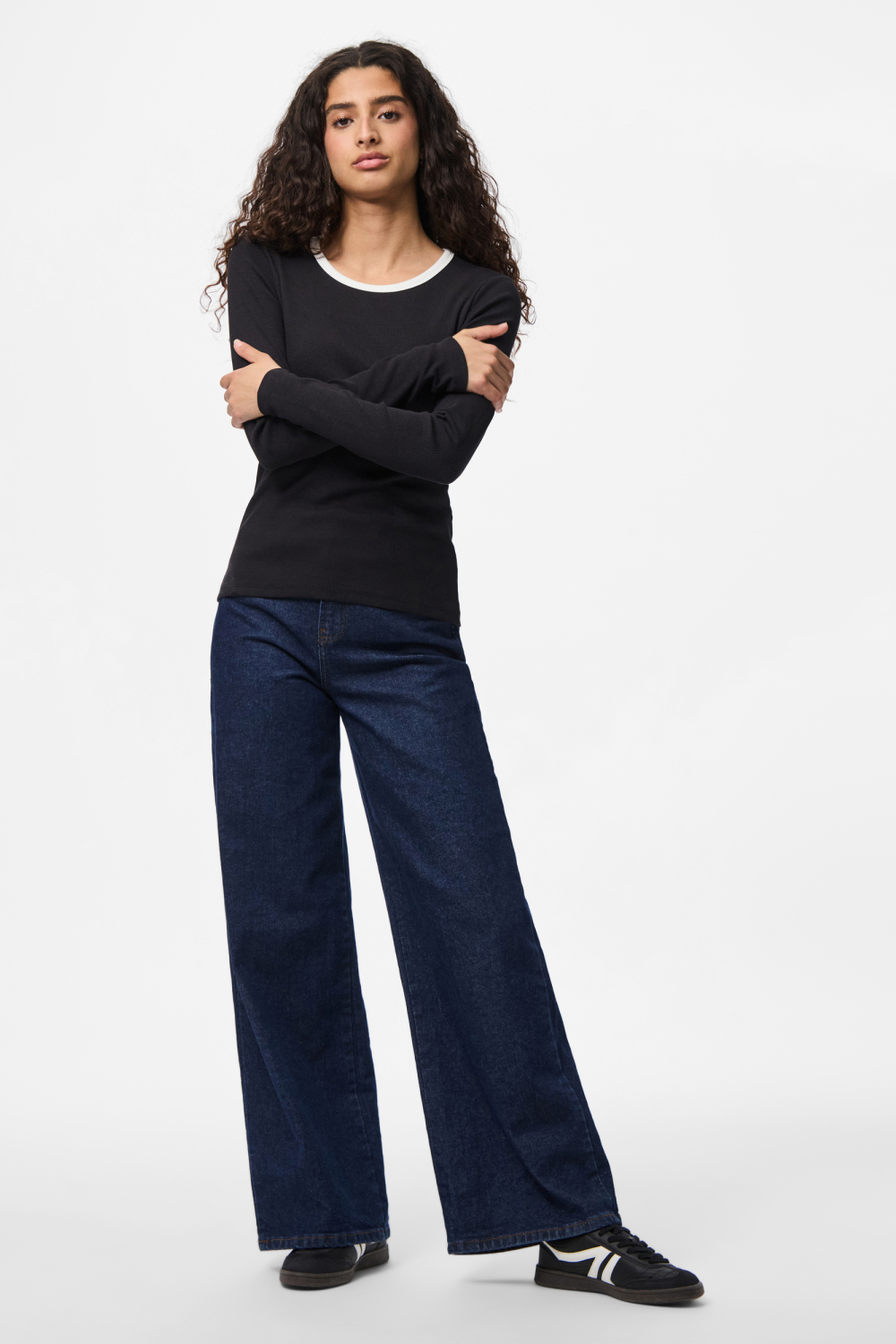 Het zwarte rib T-shirt van Pieces is een veelzijdige aanvulling op je herfstgarderobe. Met zijn stijlvolle ronde hals en contrastkleurige boord voegt dit T-shirt net dat beetje extra toe aan je alledaagse look. De lange mouwen en de normale lengte maken het ideaal voor de koudere dagen, terwijl de slim fit pasvorm zorgt voor een eigentijdse uitstraling. Gemaakt van 95% biologisch katoen en 5% elastan, biedt het niet alleen comfort, maar ook een duurzame keuze binnen jouw kledingcollectie.