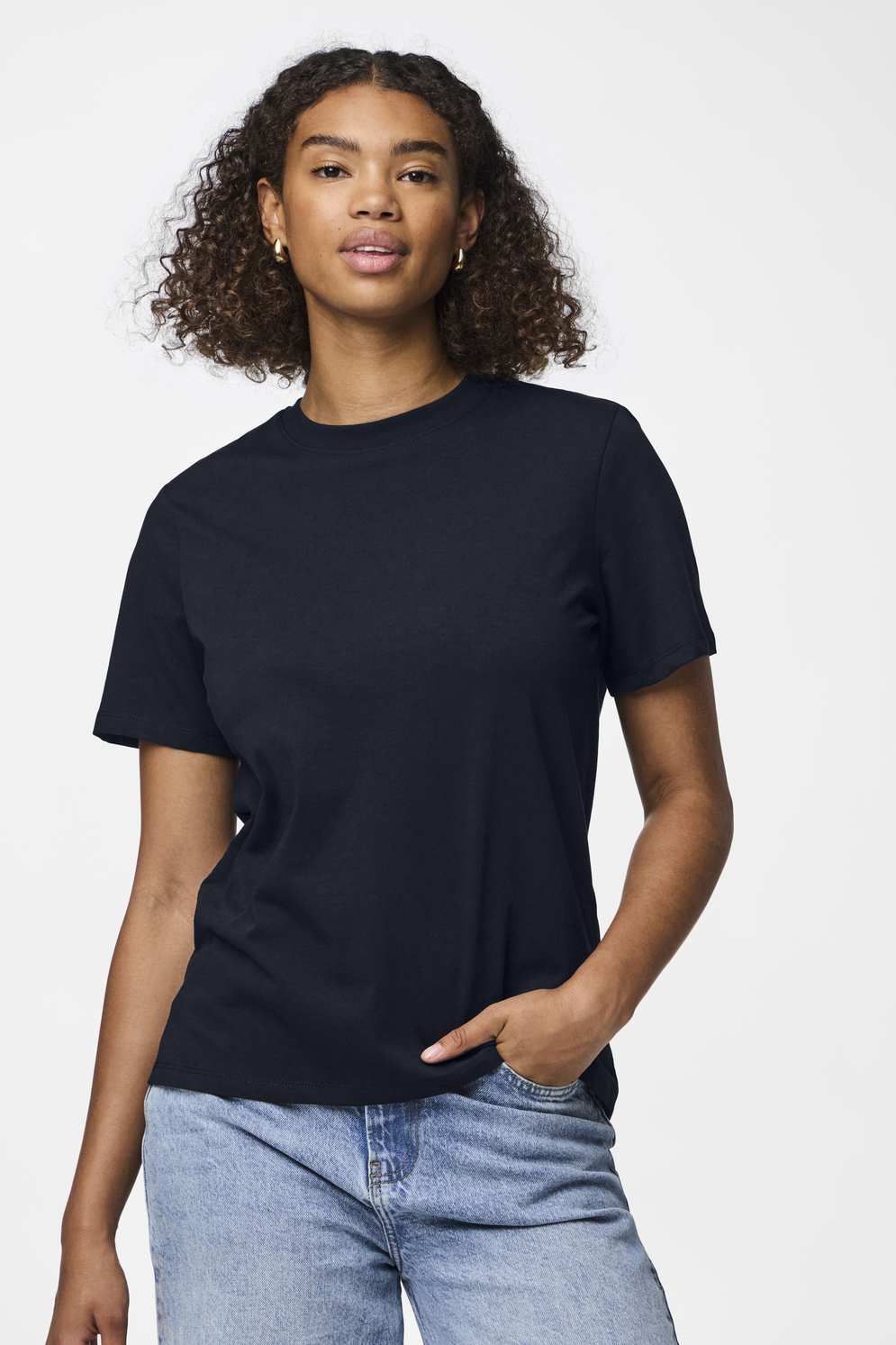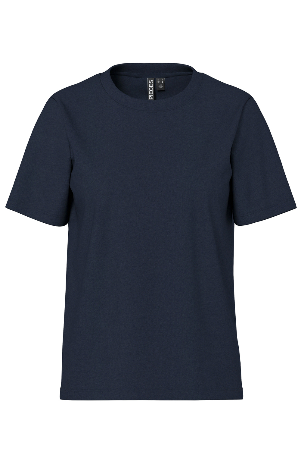 Dit veelzijdige T-shirt van Pieces in de kleur Sky Captain is een perfecte toevoeging aan je draagbare kledingstukken. Met zijn regular fit en ronde hals biedt het zowel comfort als stijl. Gemaakt van 100% katoen, voelt dit T-shirt zacht aan op de huid en is het ideaal voor dagelijks gebruik. De korte mouwen maken het perfect voor warmer weer, terwijl de normale lengte zorgt voor een klassieke uitstraling. Combineer het met je favoriete jeans voor een casual look die altijd werkt. Of je nu een relaxte dag plant of een casual uitstapje maakt, dit T-shirt is een prima keuze. De donkere kleur biedt een tijdloze uitstraling die makkelijk te combineren is met diverse stijlen en kleuren. Of je nu gaat voor een ontspannen uitstraling of een basislaag onder een jasje, dit T-shirt biedt je eindeloze mogelijkheden. Een duurzame keuze die jouw garderobe zeker aanvult.