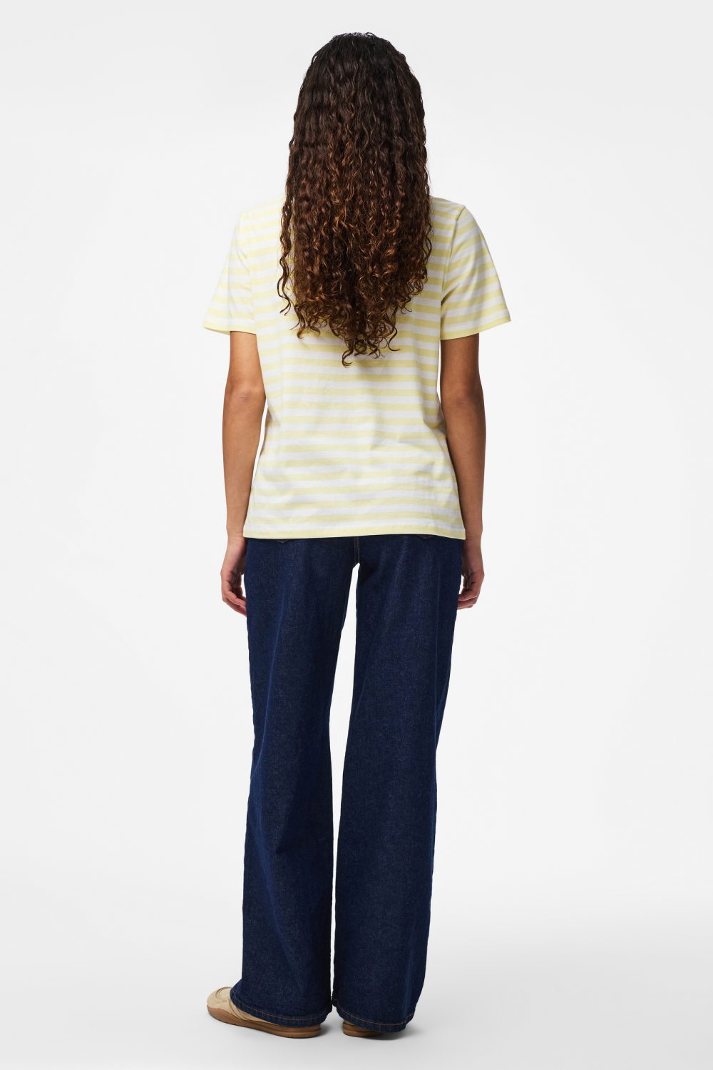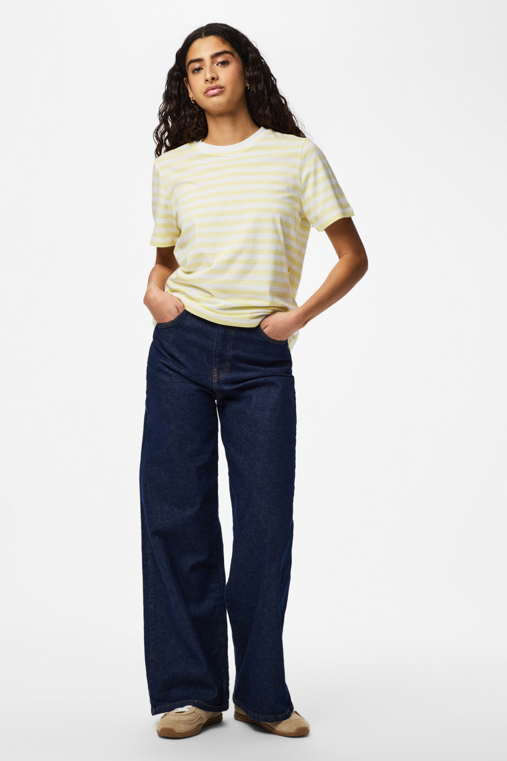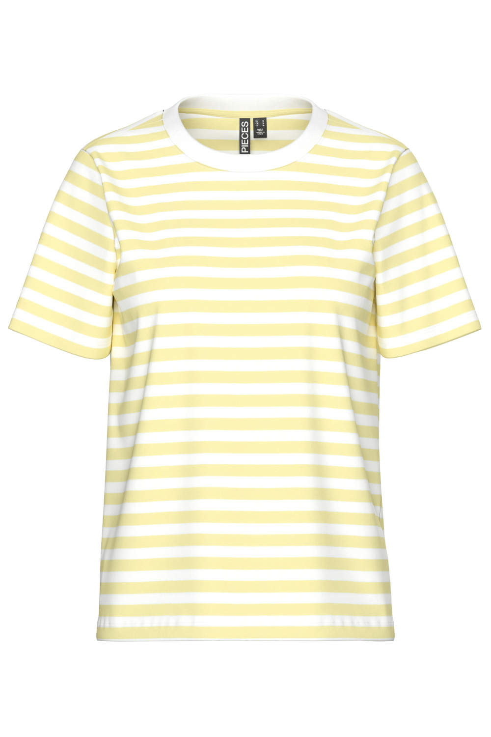 Dit Pieces dames T-shirt is een ideale keuze voor elke casual lente-outfit. Gemaakt van zachte, ademende 100% katoen, biedt het comfort terwijl het een frisse uitstraling behoudt. Het shirt heeft een regular fit en is voorzien van een ronde hals, wat zorgt voor een eenvoudige en tijdloze look. De geel met witte strepen geven het T-shirt een speelse en zomerse uitstraling, perfect voor een zonnige dag in het park of een ontspannende lunch met vrienden. Door de korte mouwen en normale lengte is dit T-shirt veelzijdig te combineren. Draag het met een lichte jeans voor een dagje winkelen of met een comfortabele rok voor een ontspannen dag thuis. Dit T-shirt van Pieces voegt moeiteloos een vleugje kleur en stijl toe aan jouw dagelijkse garderobe. Of je nu onderweg bent naar een casual bijeenkomst of een ontspannen middag plant, dit T-shirt biedt een comfortabele en modieuze keuze.