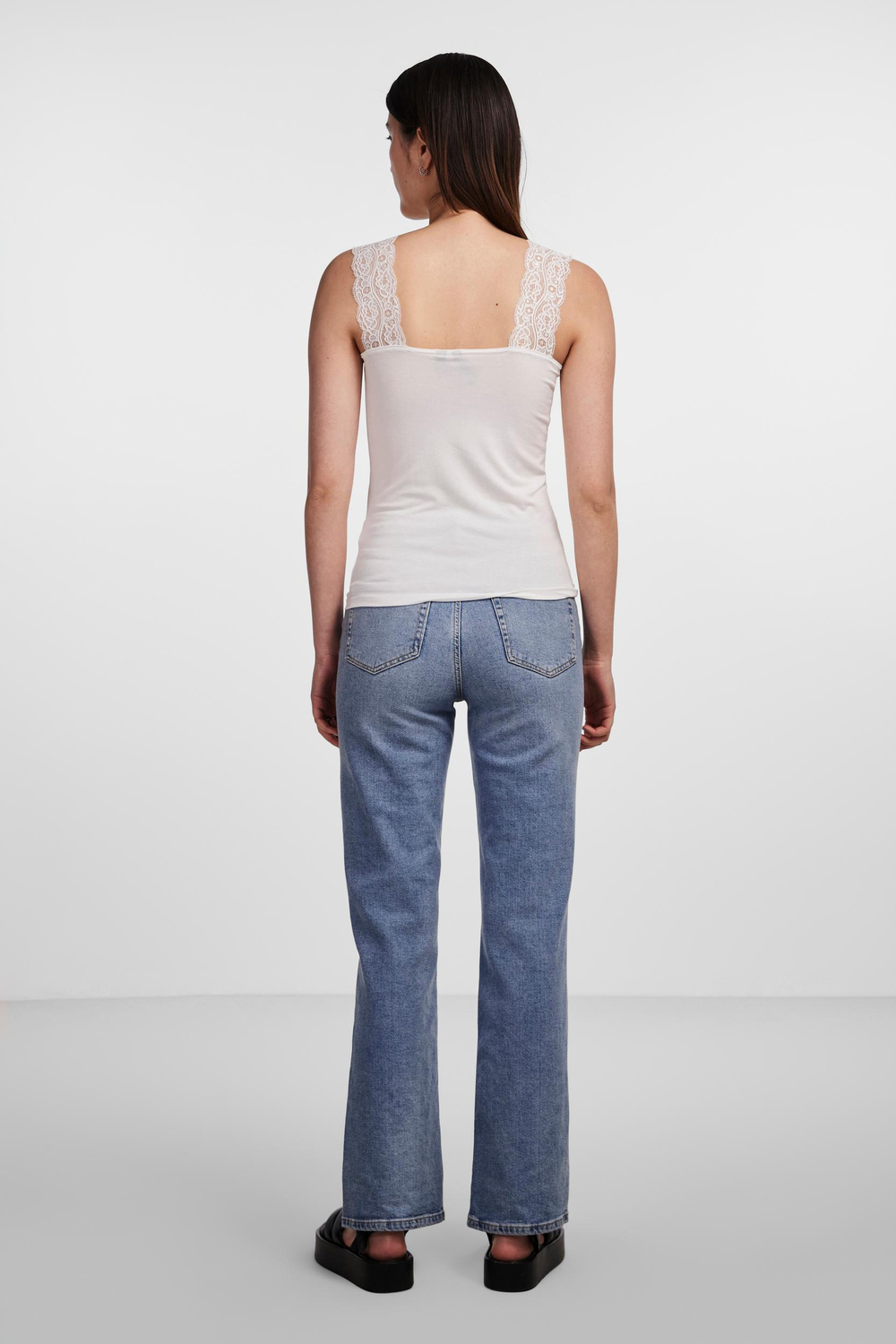 Deze chique, mouwloze top van Pieces in een heldere witte tint is een elegante toevoeging aan je garderobe. De top is vervaardigd uit een soepele mix van 95% Viscose Lenzing Ecovero en 5% Elastan, wat zorgt voor een zachte en comfortabele pasvorm. Met een sierlijke V-hals en verfijnde kanten details bij de schouders, biedt deze slim fit top een stijlvol accent dat eenvoudig gecombineerd kan worden met diverse outfits.
