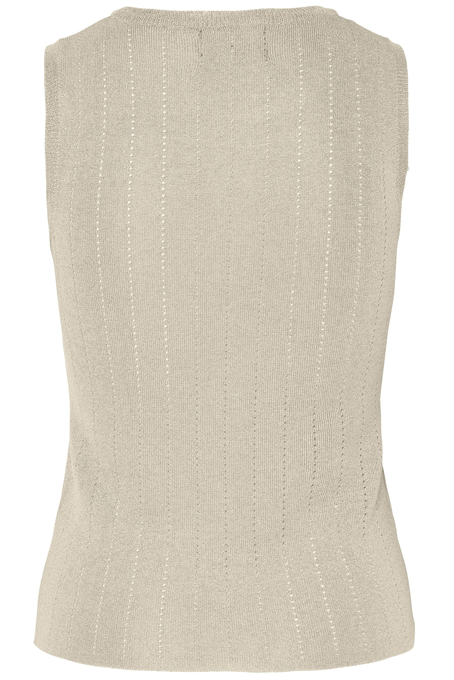 Deze stijlvolle Knitwear top van Pieces, uitgevoerd in de tint SANDSHELL/GOLD LUREX, is een slimme keuze als je op zoek bent naar iets speciaals voor je lente-garderobe. De top heeft een ronde hals en een slim fit pasvorm die zorgt voor een flatterende look. Het unieke glitterpatroon voegt een subtiel vleugje glamour toe, ideaal voor zowel dagelijks gebruik als een avondje uit. De mouwloze constructie maakt deze Pieces top perfect voor warmere dagen, terwijl de normale lengte zorgt voor een comfortabele pasvorm. Combineer hem met een leuke jeans voor een casual look, of draag hem met een nette rok voor een elegantere uitstraling. Dankzij de duurzame materialen en het eigentijdse design is deze top een veelzijdige en verantwoorde aanvulling op je kledingkast.