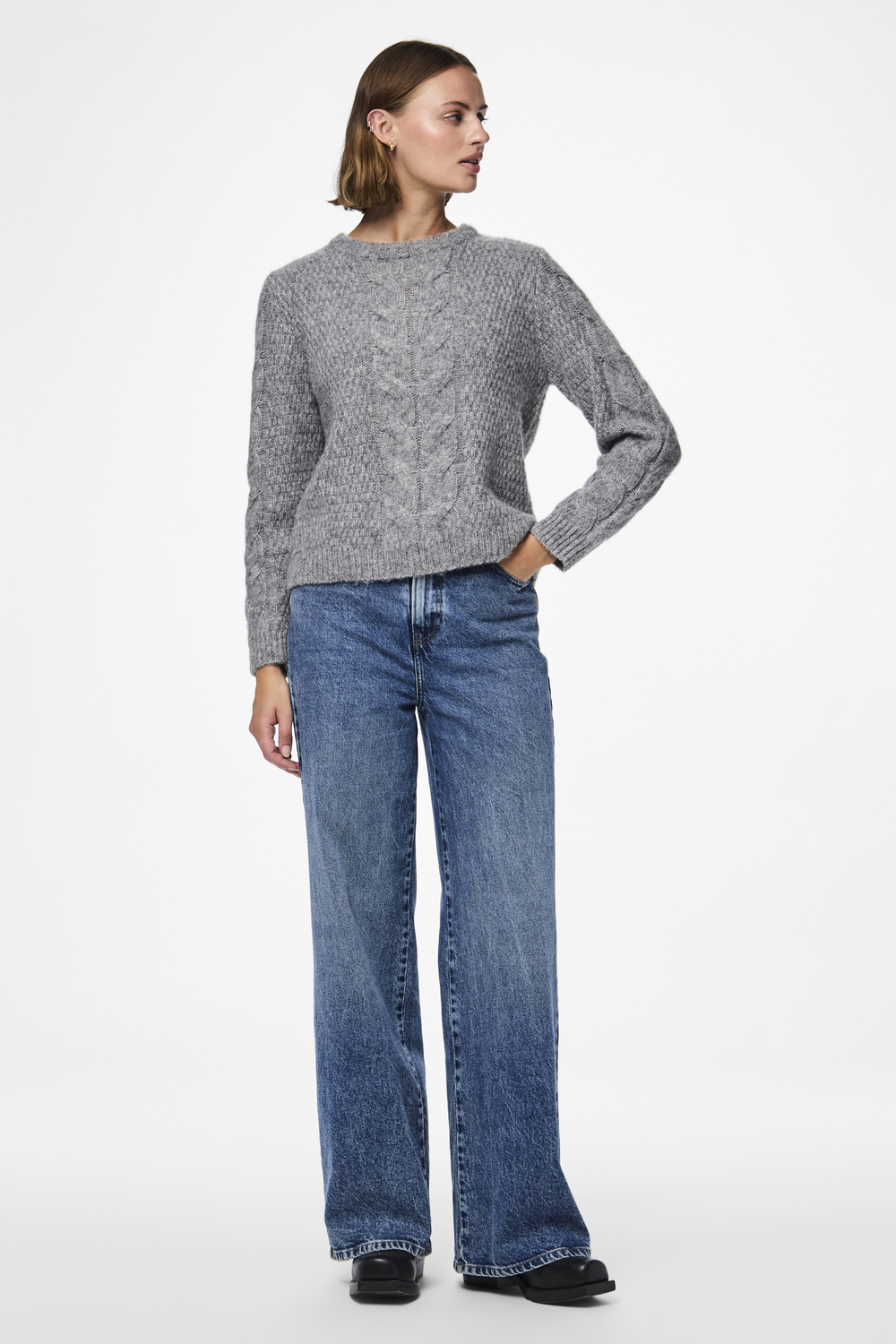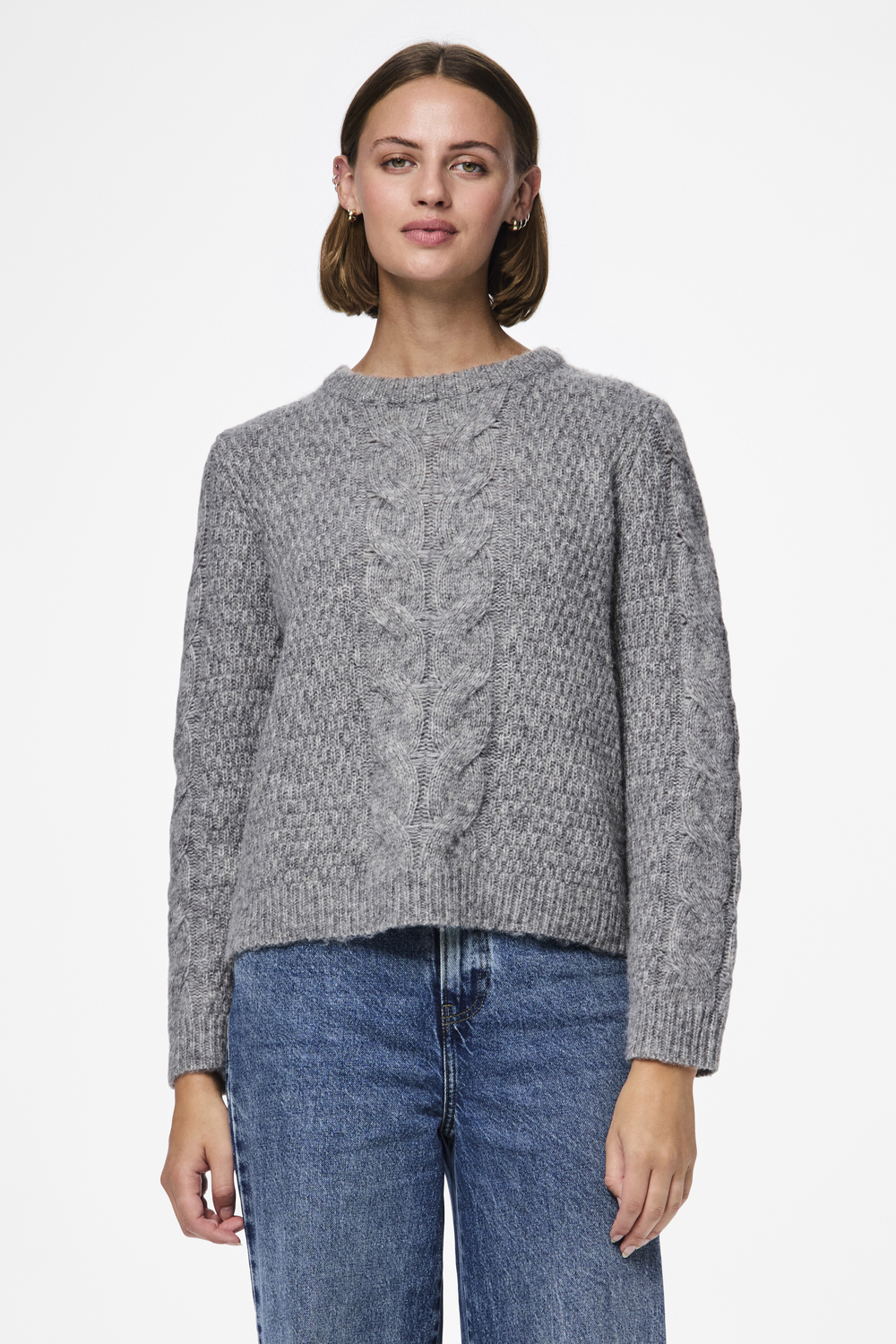 Deze comfortabele trui van Pieces is een must-have voor elke garderobe. Gemaakt van hoogwaardige knitwear, biedt deze regular fit trui een heerlijk draaggevoel. De medium grey melange kleur en het kabelpatroon geven de trui een tijdloze uitstraling die je moeiteloos kunt combineren met andere stukken in je kast. De ronde halslijn en lange mouwen voegen een klassieke touch toe, waardoor deze trui ideaal is voor zowel casual als meer geklede gelegenheden. Dankzij de normale lengte en het duurzame materiaal is deze Pieces trui perfect voor dagelijks gebruik. Combineer hem met een spijkerbroek voor een ontspannen, alledaagse look, of draag hem over een blouse voor een iets formelere uitstraling. Of je nu een wandeling in het park maakt of een gezellige avond doorbrengt met vrienden, deze trui biedt de perfecte balans tussen comfort en stijl.