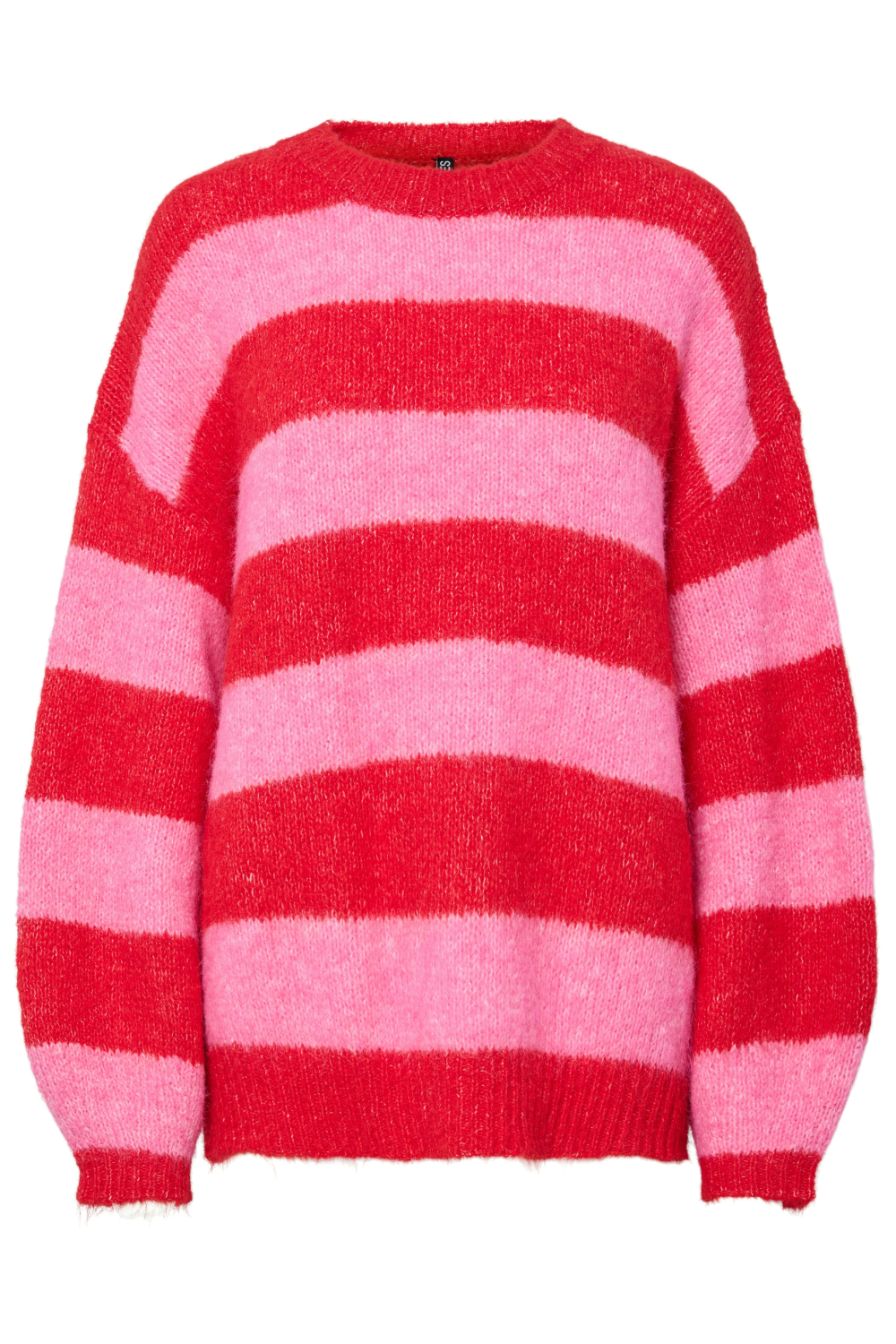 De Pieces trui met kleurrijke strepen brengt warmte en stijl in je wintergarderobe. Deze knitwear trui heeft een opvallende strepenpatroon in levendige rode en roze tinten, wat zorgt voor een speelse uitstraling. Met een regular fit en een comfortabele ronde hals is deze trui perfect voor dagelijks gebruik, van een relaxte dag thuis tot een casual uitje in de stad. De lange mouwen en normale lengte maken het een veelzijdig item dat moeiteloos te combineren is met je favoriete spijkerbroek of rok. Door zijn zachte textuur biedt de trui niet alleen stijl maar ook comfort, waardoor hij ideaal is voor koude dagen. De Pieces trui is een uitstekende keuze voor zowel informele afspraken als een dag op kantoor. Je voelt je altijd comfortabel en ziet er trendy uit, ongeacht de gelegenheid. Dit item voegt met zijn unieke kleuren een frisse wind toe aan je winterse outfits, geschikt voor stijlvolle momenten met een twist.