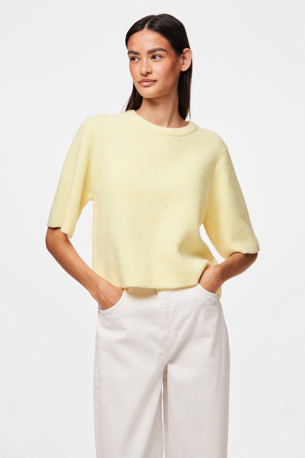 Deze lichtgele trui van Pieces is een verfijnde keuze voor jouw lentegarderobe. Met zijn ribpatroon en regular fit biedt deze trui een comfortabele en veelzijdige stijl. De trui is voorzien van een ronde hals en korte mouwen, waardoor hij ideaal is om te dragen tijdens een milde lentedag. De zachte kleur en klassieke snit maken het eenvoudig om te combineren met verschillende stukken in je kast. Gemaakt van hoogwaardig knitwear, straalt deze Pieces trui tijdloze elegantie uit. Een perfecte match voor zowel casual als meer formele gelegenheden, draag hem op een lichte jeans of een elegante broek voor een ontspannen maar stijlvolle look. Of je nu een dagje uit plant, een wandeling maakt in het park of gewoon thuis ontspant, deze trui biedt comfort en klasse in één.