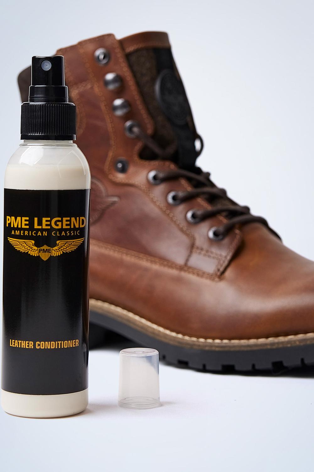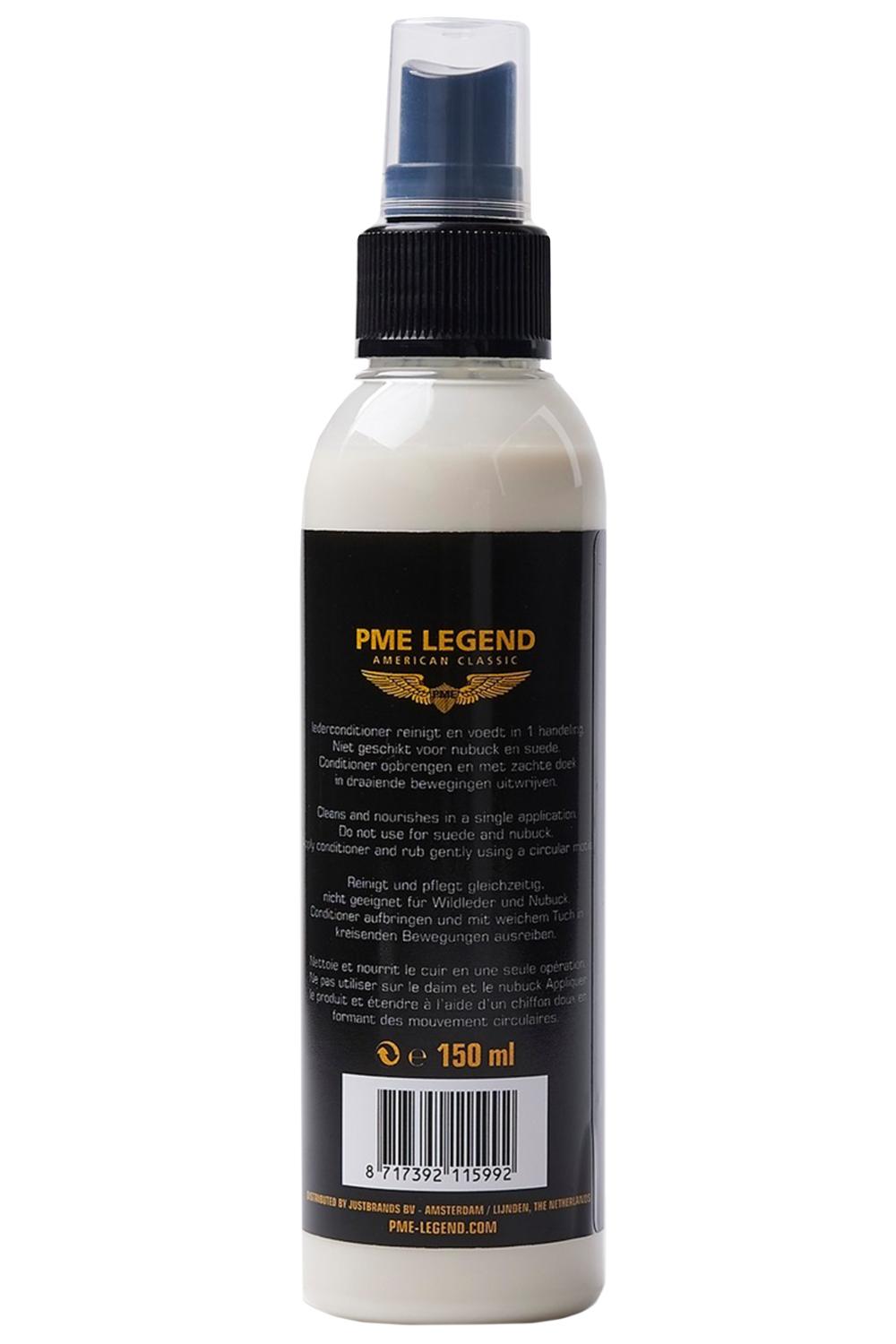 Leather conditioner van PME Legend. Deze conditioner is speciaal ontwikkeld voor geverfd en gecoat leer. Om te reinigen, voeden en waterbestendig maken. Niet geschikt voor geborsteld leer zoals bijvoorbeeld suede. Dit flesje van 150 ML heeft een makkelijke spraydop waardoor het aanbrengen makkelijk gelijkmatig gaat. Sprayen, en dan met een zachte doek in draaiende bewegingen uitwrijven.