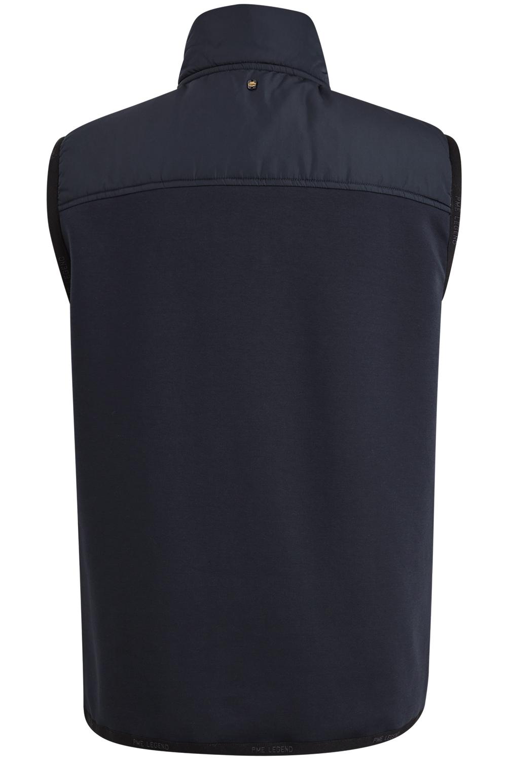 Bodywarmer van PME Legend met een gewatteerde voorkant. Dit model heeft een opstaande kraag en sluit met een rits. De bodywarmer is afgewerkt met een bies met het logo van PME Legend en heeft twee opgestikte steekzakken aan de voorkant. Op borsthoogte staat een embleem geplaatst met het logo van PME Legend.