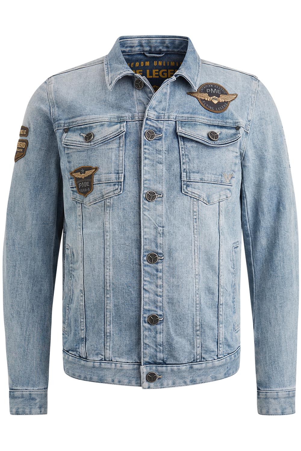 Stoer denim jacket van PME Legend met lange mouwen en een puntkraag. Dit model heeft steekzakken aan de voorkant en klepzakken op borsthoogte. De jas sluit met knopen.
