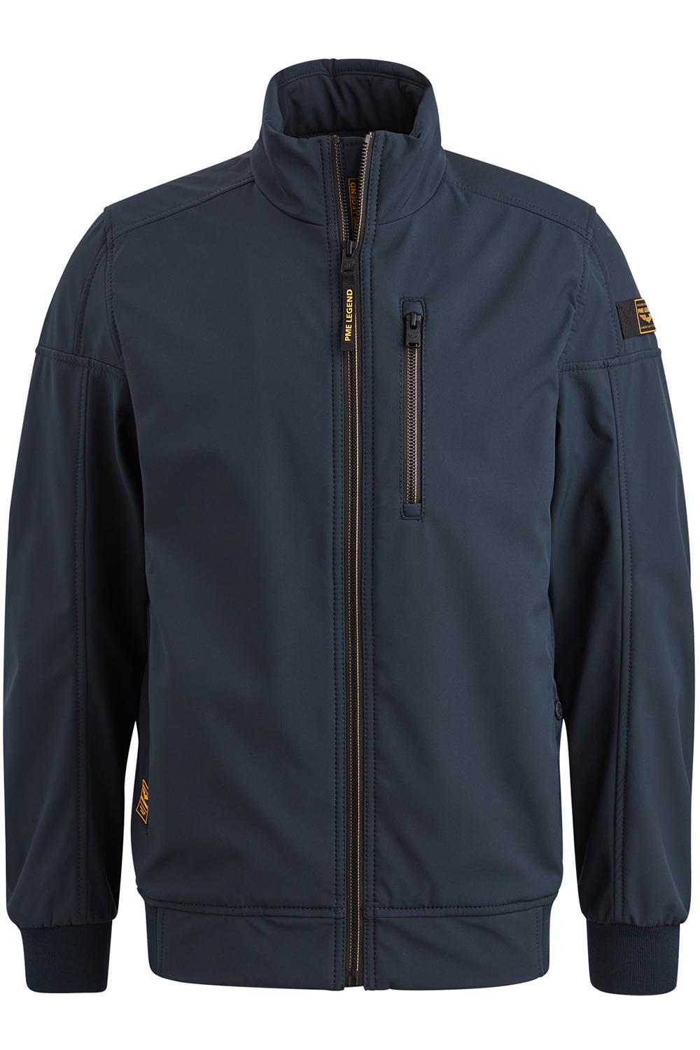 Jas van PME Legend met lange mouwen en een highneckkraag. Dit model heeft steekzakken aan de voorkant met drukknoopsluiting en een ritszak op borsthoogte. De jas sluit met een rits en de totale lengte is 69 cm bij maat M.