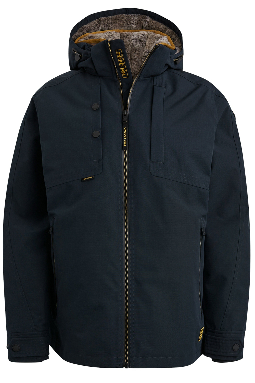 Stoere winterjas van PME Legend geinspireerd op de B-9 Parka. De authentieke B-9 Parka is ontworpen voor piloten die door extreem koud weer vliegen. De jas heeft een uitneembare voering gemaakt van een imitatiebond waardoor de jas lekker warm is. De lange mouwen hebben manchetten met drukknopen en een ribgebreide boord. Op de linkermouw is het logo van PME Legend geplaatst. Dit model heeft een afritsbare capuchon met zachte binnenkant. De jas heeft een borstzak met een rits, een borstzak met drukknopen en twee ritszakken aan de voorkant met een fleecevoering. Deze tweelaagse WP5K en MVP3K jas is waterafstotend en winddicht. De video is ter informatie van de pasvorm en model. De juiste kleur wordt getoond op de foto's.