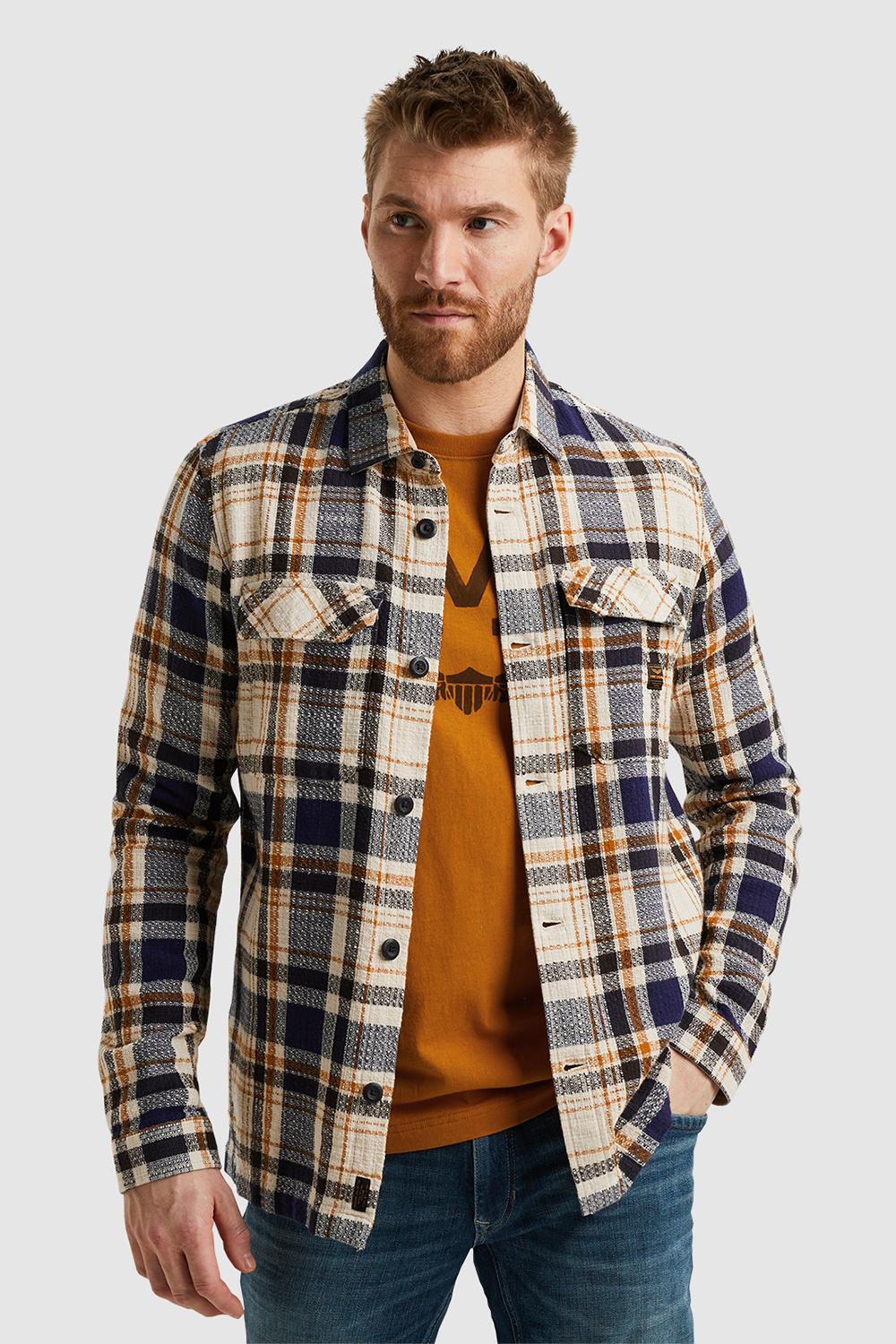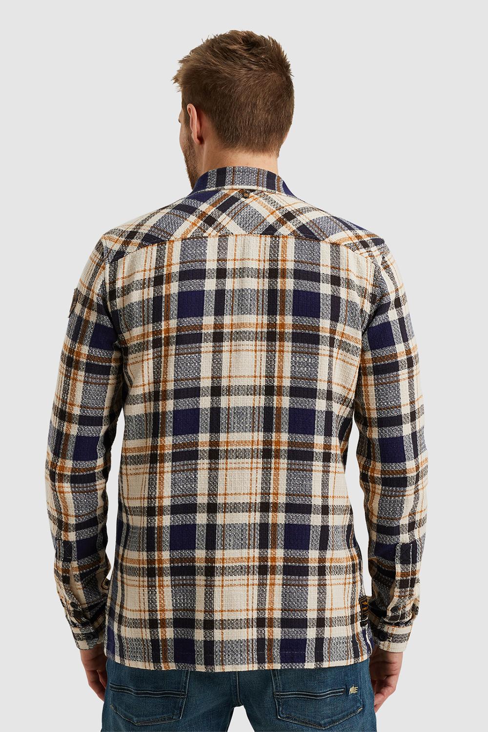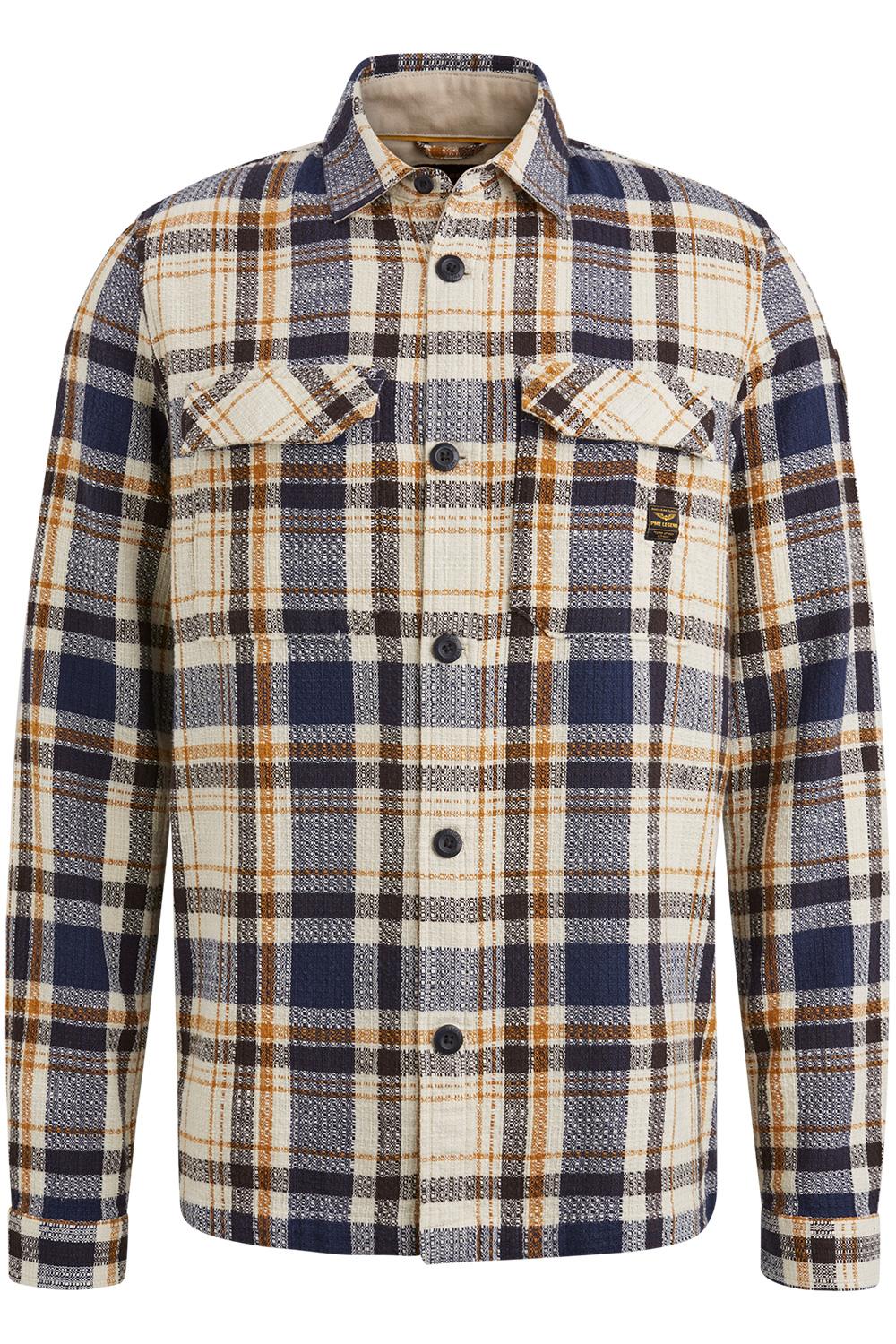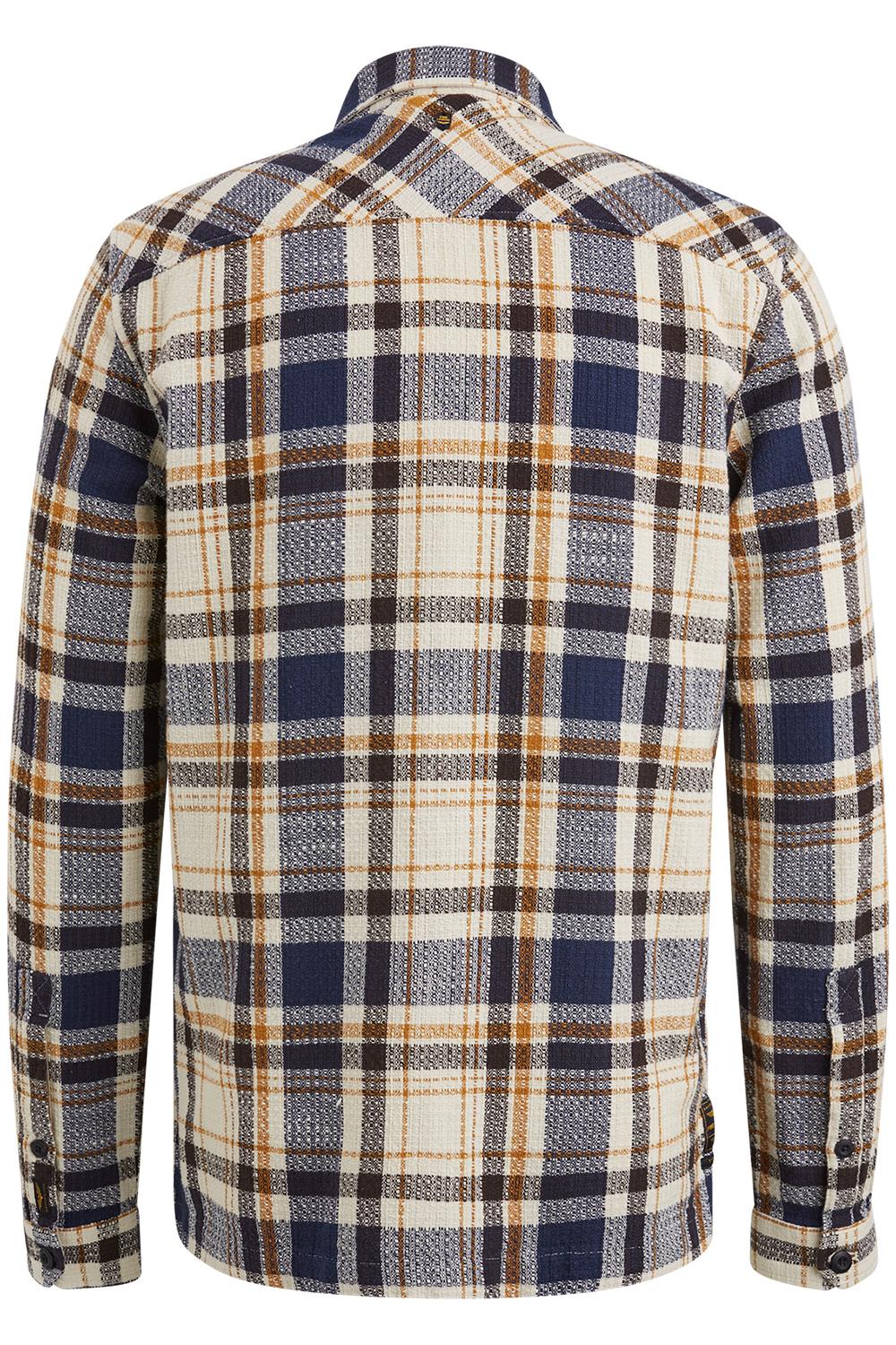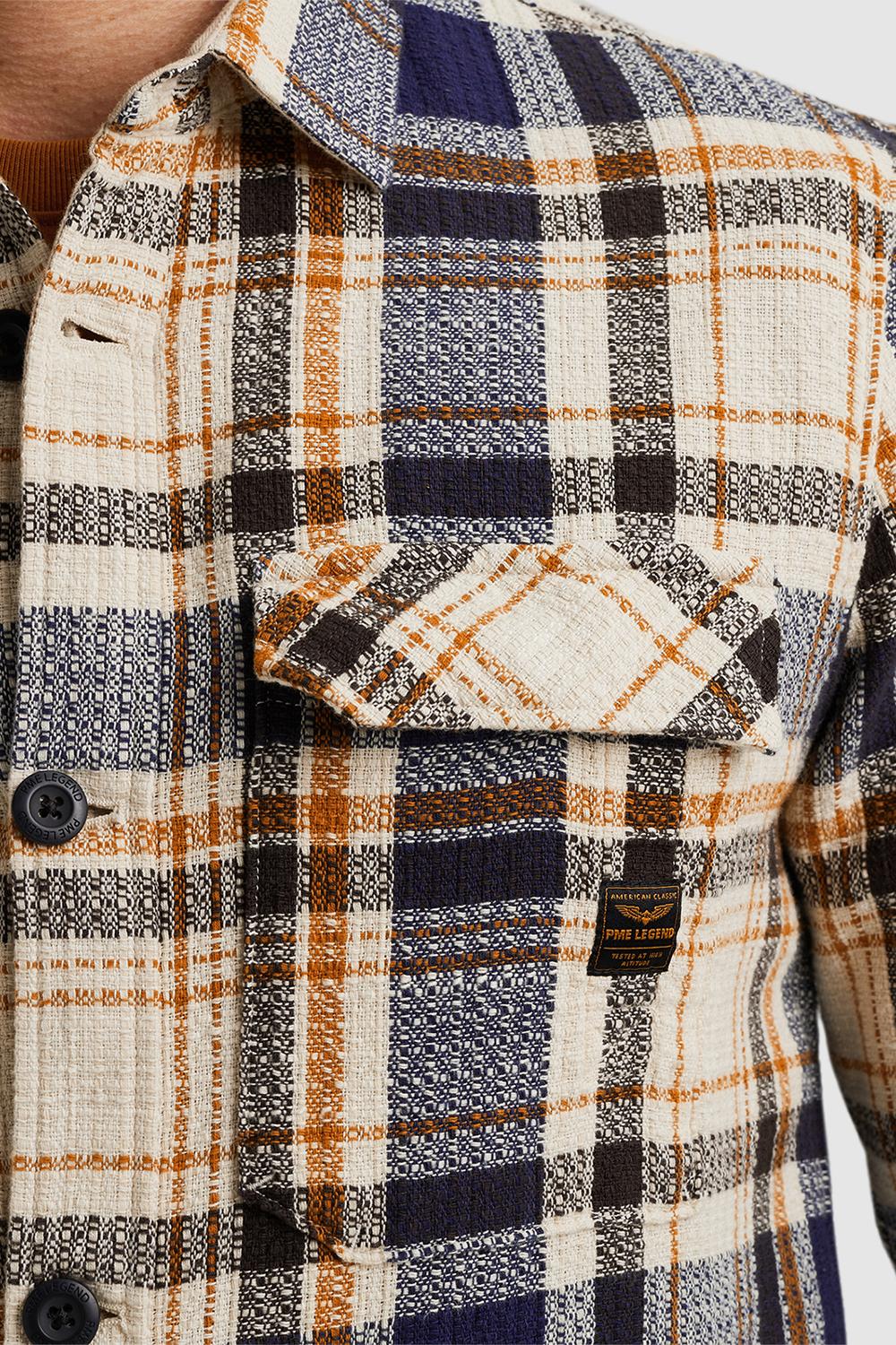 Overhemd van PME Legend met lange mouwen. Dit item is voorzien van een puntkraag en een allover geblokt patroon. Het overhemd heeft twee klepzakken op borsthoogte en sluit met een rij knopen aan de voorkant.