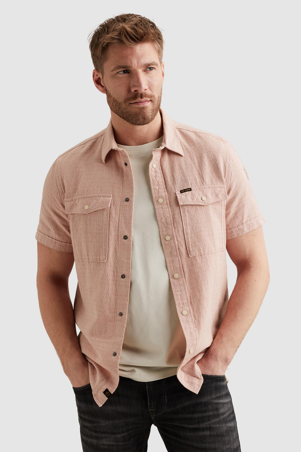 Dit comfortabele roze herenoverhemd van PME Legend is een veelzijdige toevoeging aan je zomergarderobe. Gemaakt van een verfijnde mix van 73% katoen en 27% linnen, biedt het een ademende en lichte stof die ideaal is voor warmere dagen. De structuurpatroon en de subtiele PME Legend badge op de mouw geven dit shirt een unieke en eigenzinnige uitstraling. Met de praktische drukknoopsluiting en een puntkraag biedt het shirt zowel gemak als stijl. De regular fit pasvorm en de korte mouwen maken dit overhemd geschikt voor casual gelegenheden. De dubbele borstzakken voegen niet alleen een stijlvol element toe, maar zijn ook handig voor het opbergen van kleine spullen. Of je nu een ontspannen dag in de stad plant of een informele bijeenkomst bijwoont, dit PME Legend overhemd past perfect bij een jeans of een lichte broek voor een moeiteloze, modieuze look.