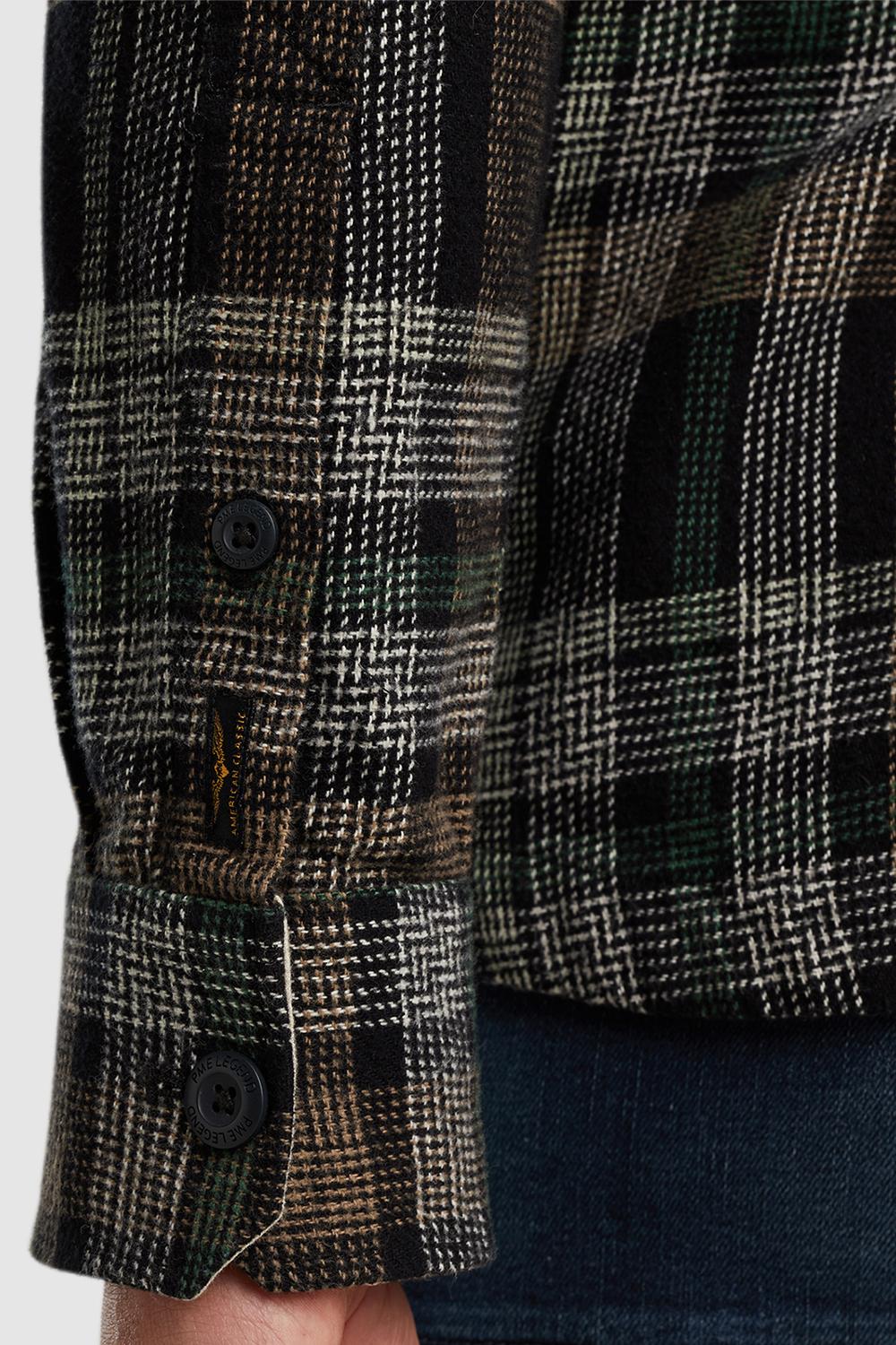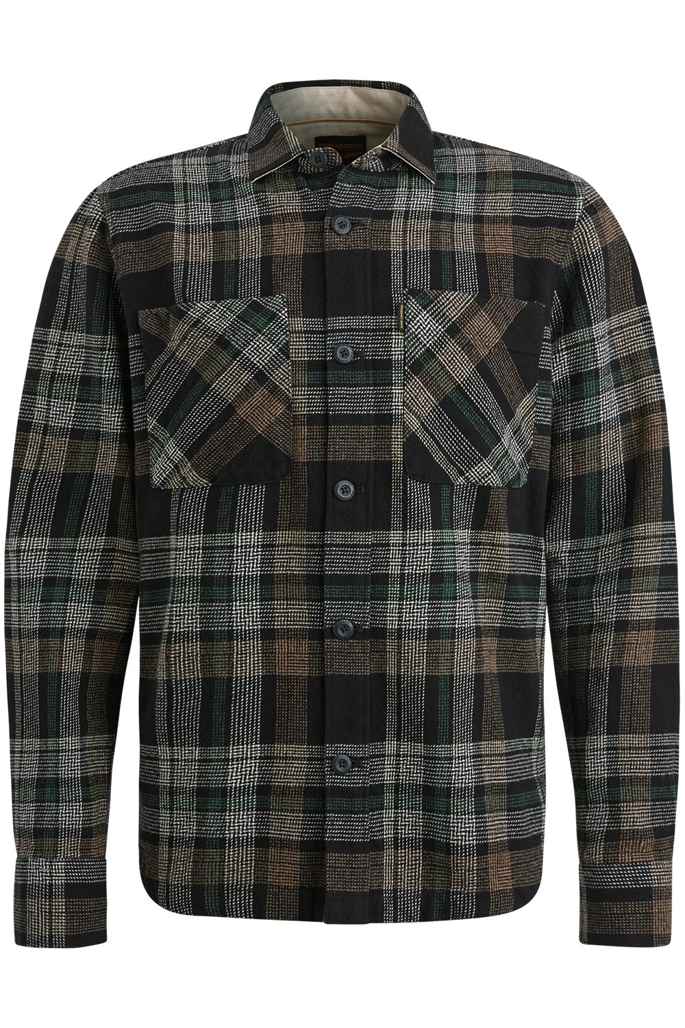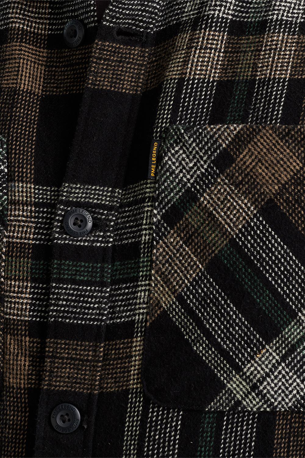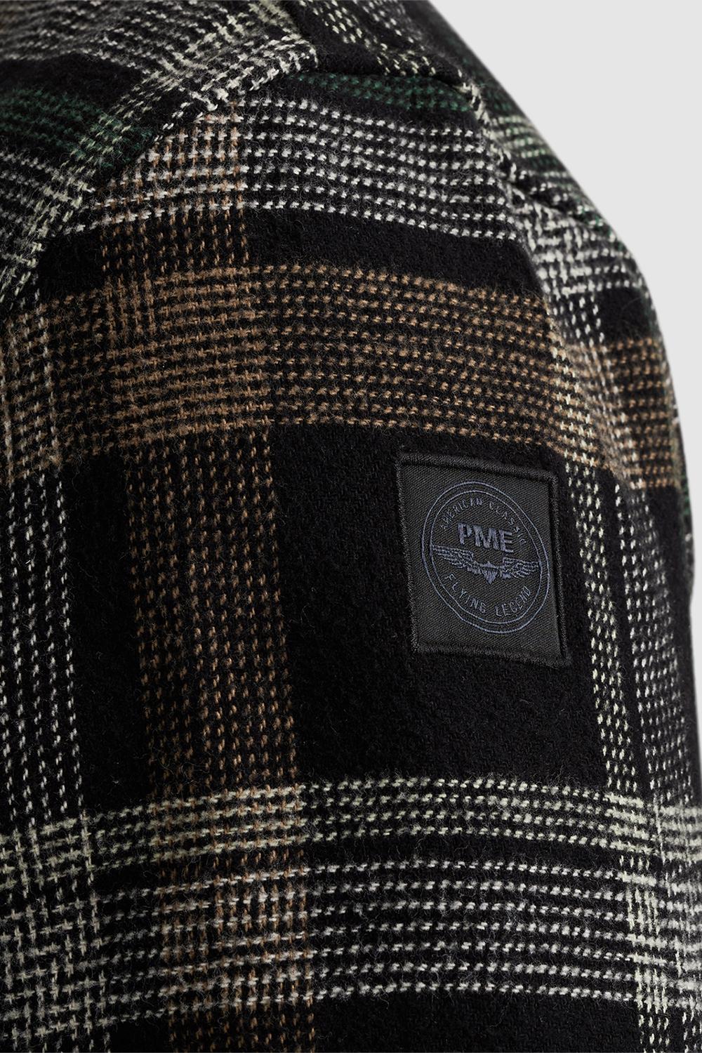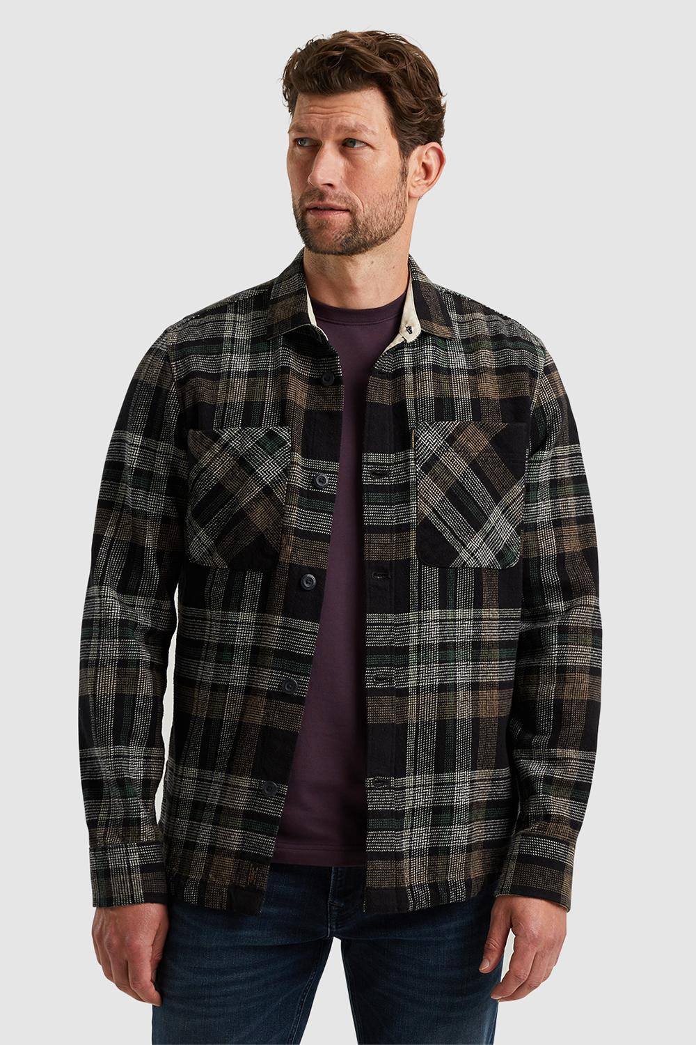 Overshirt van PME legend met lange mouwen en een puntkraag. Dit model heeft een allover geblokt patroon en twee steekzakken op borsthoogte. Het overshirt sluit met knopen.