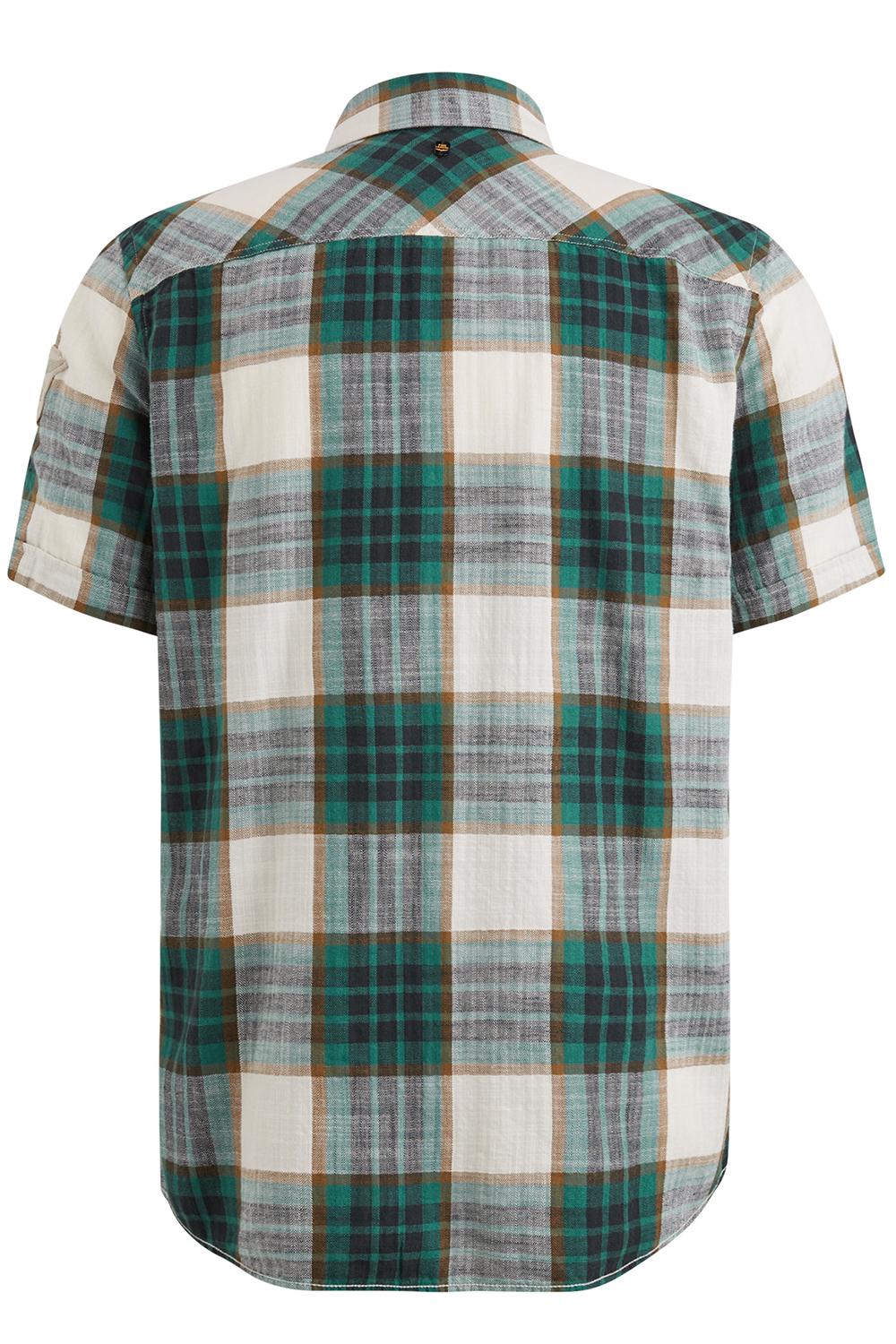 Overhemd van PME Legend met korte mouwen. Dit item is voorzien van een puntkraag en sluit met drukknopen aan de voorkant. Het overhemd heeft een allover geruit patroon en klepzakken op borsthoogte.