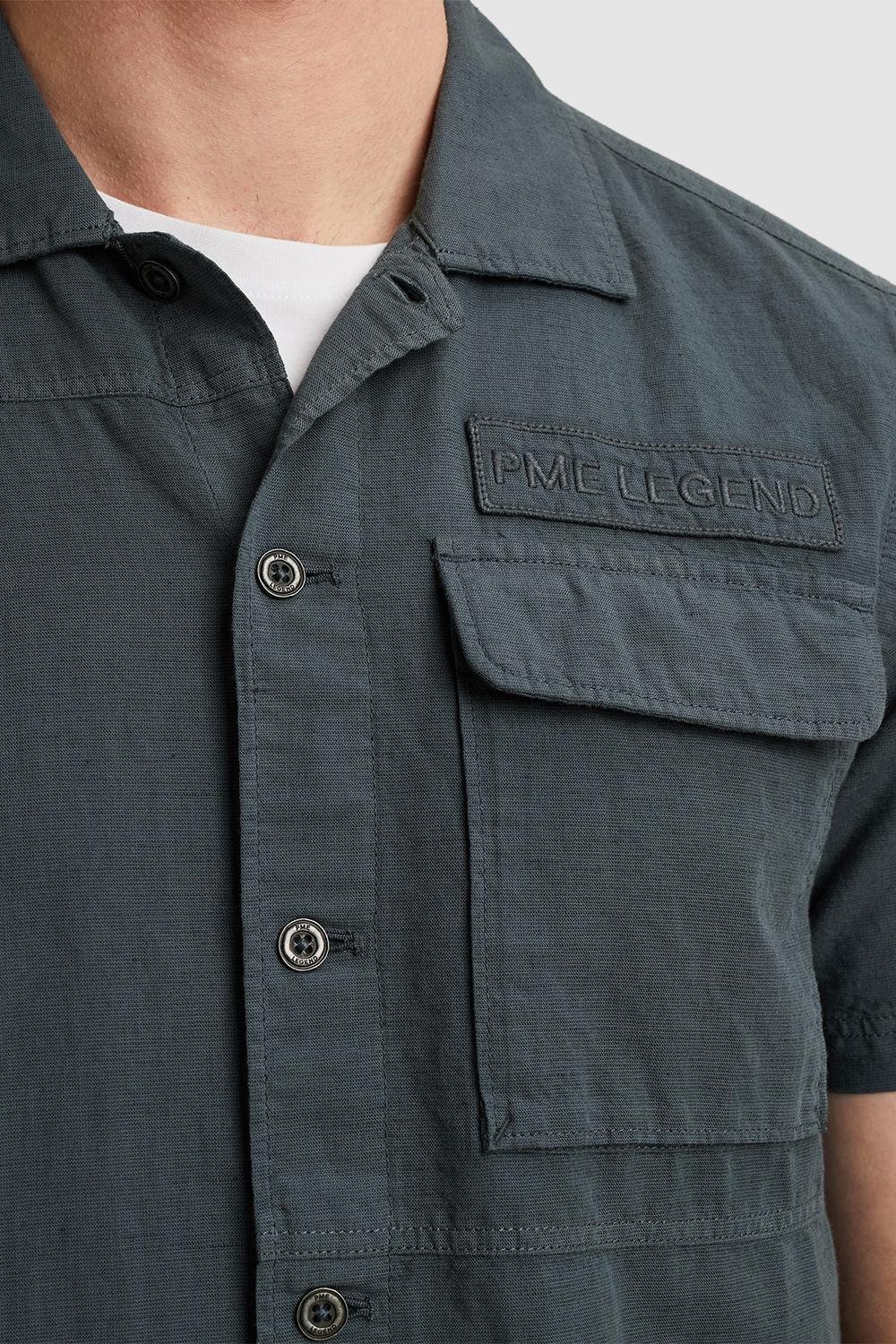 Dit casual gemêleerde overhemd van PME Legend is een stijlvolle aanvulling voor je zomergarderobe. Het overhemd is gemaakt van 62% katoen en 38% linnen, wat niet alleen een luchtige en draagbare stof biedt, maar ook een subtiele textuur toevoegt aan je outfit. De korte mouwen maken het ideaal voor warmere dagen, terwijl de stevige knoopsluiting en de klassieke puntkraag zorgen voor een verzorgde uitstraling. De borstzakken voegen een praktische én stijlvolle touch toe. De regular fit van dit overhemd zorgt ervoor dat het comfortabel draagt, terwijl je nog steeds een nette look behoudt. Dit shirt is perfect voor diverse gelegenheden; draag het tijdens een informele lunch met vrienden of naar een zomerse barbecue. De subtiele PME Legend logodetails geven een extra dimensie aan de algehele look van het overhemd. Combineer het eenvoudig met een lichte jeans voor een relaxte uitstraling of met een nette broek voor een iets formelere setting. Dit overhemd biedt veelzijdige stylingmogelijkheden die moeiteloos passen bij jouw dagelijkse stijl.