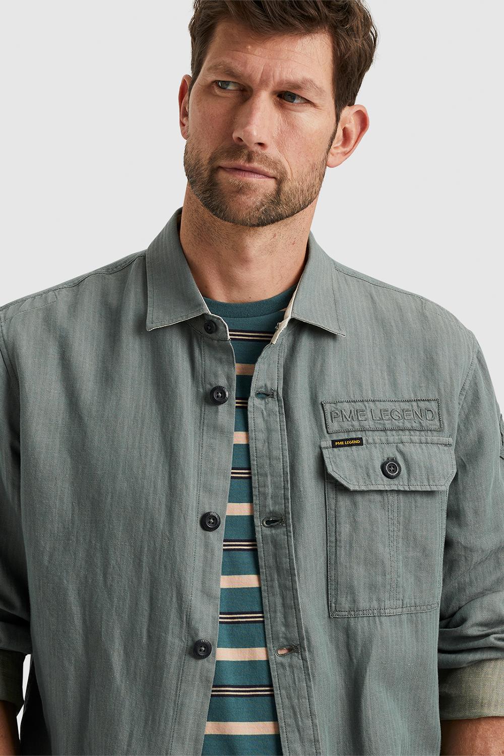 Overhemd van PME Legend gemaakt van een linnenblend. De lange mouwen hebben manchetten met knopen. Dit model heeft een puntkraag en sluit met een rij knopen. Op borsthoogte is het logo van PME Legend geborduurd en een klepzak geplaatst.