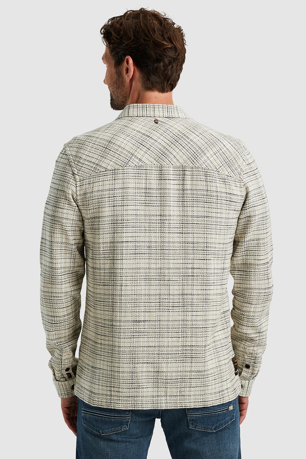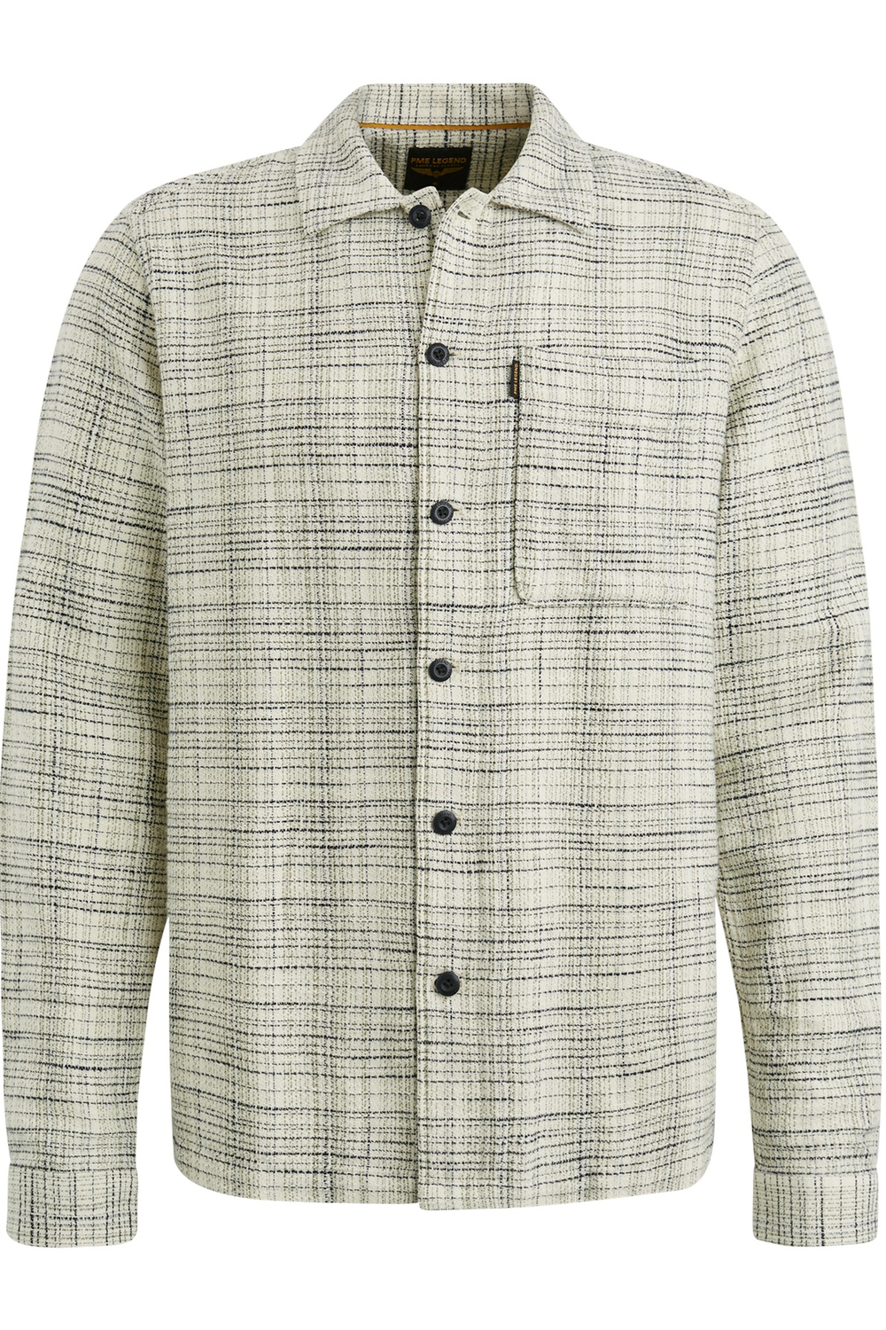 Gestructureerd overhemd van PME Legend met lange mouwen en een puntkraag. Dit model heeft een opgestikte steekzak op borsthoogte en sluit met zwarte knopen.