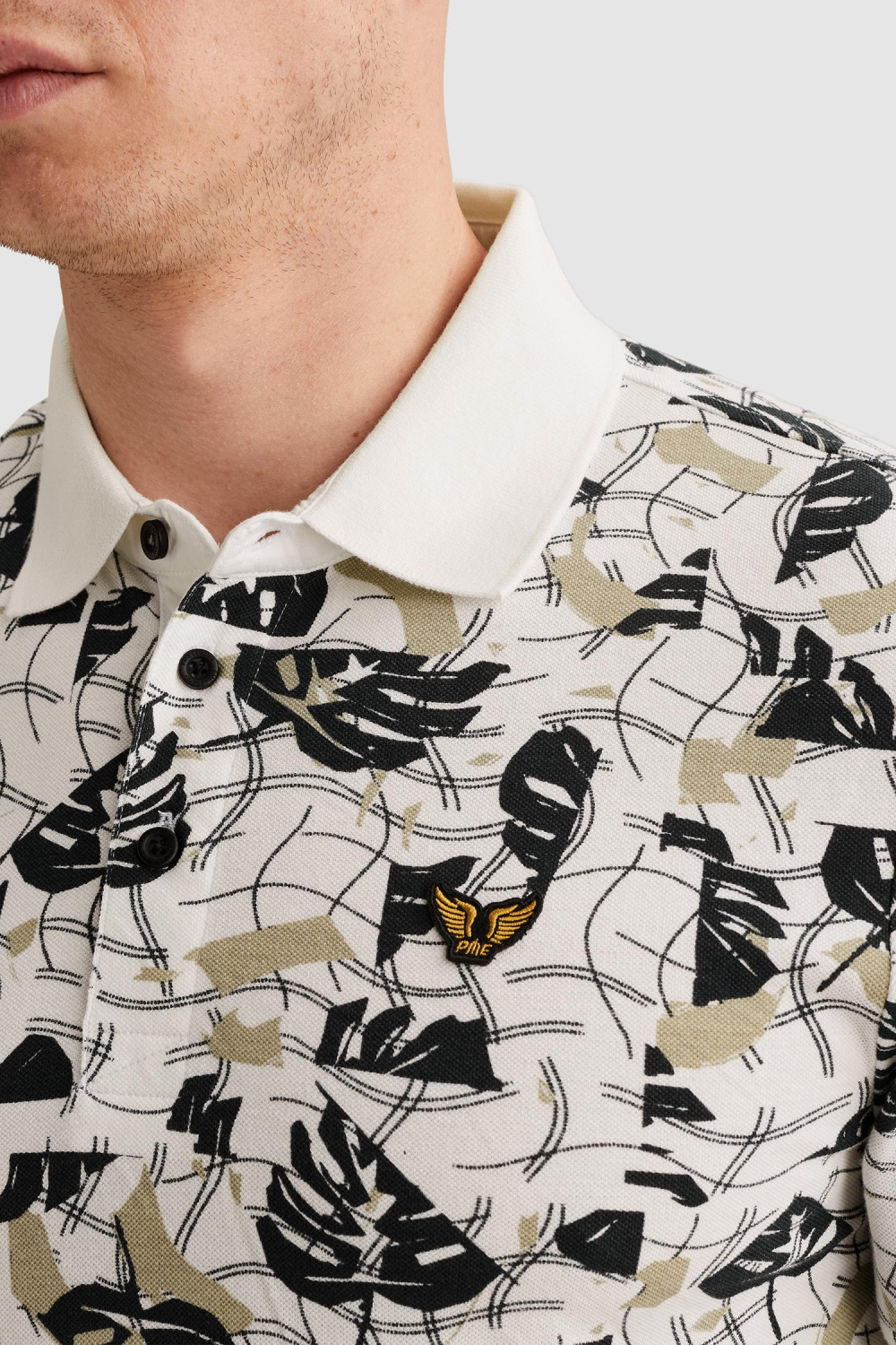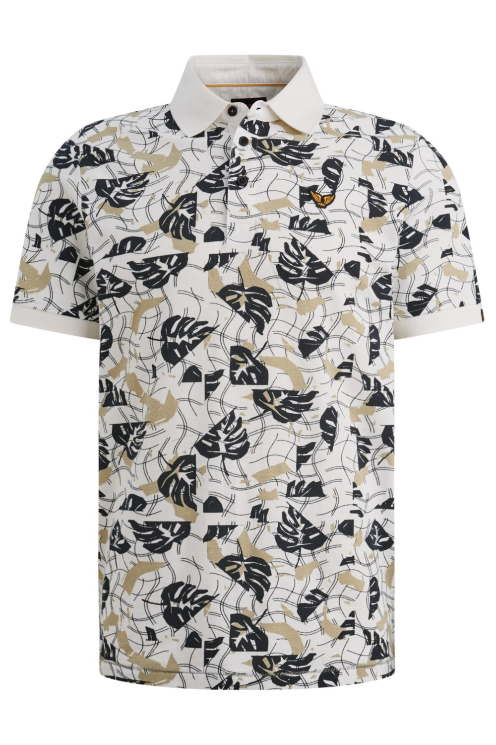 Deze PME Legend polo is een aanvulling op je zomergarderobe met zijn grafische patroon en natuurlijke kleuren. Het ontwerp trekt direct de aandacht dankzij de opvallende zwarte en beige bladerprint, perfect voor een casual look. De regular fit en rib kraag geven de polo een comfortabele pasvorm, ideaal voor warme zomerdagen. De klassieke knoopsluiting voegt een subtiel detail toe zonder de uitstraling van deze stijlvolle polo te verstoren. Gemaakt van 70% katoen en 30% gerecycled polyester, biedt deze polo zowel duurzaamheid als comfort. De korte mouwen maken het een veelzijdige keuze voor zowel informele als iets nettere gelegenheden. Of je nu naar een barbecue gaat of een ontspannen dag op het strand doorbrengt, deze PME Legend polo geeft je outfit net dat beetje extra flair. Een simpele jeans of een luchtige chino erbij en je bent klaar om te gaan.