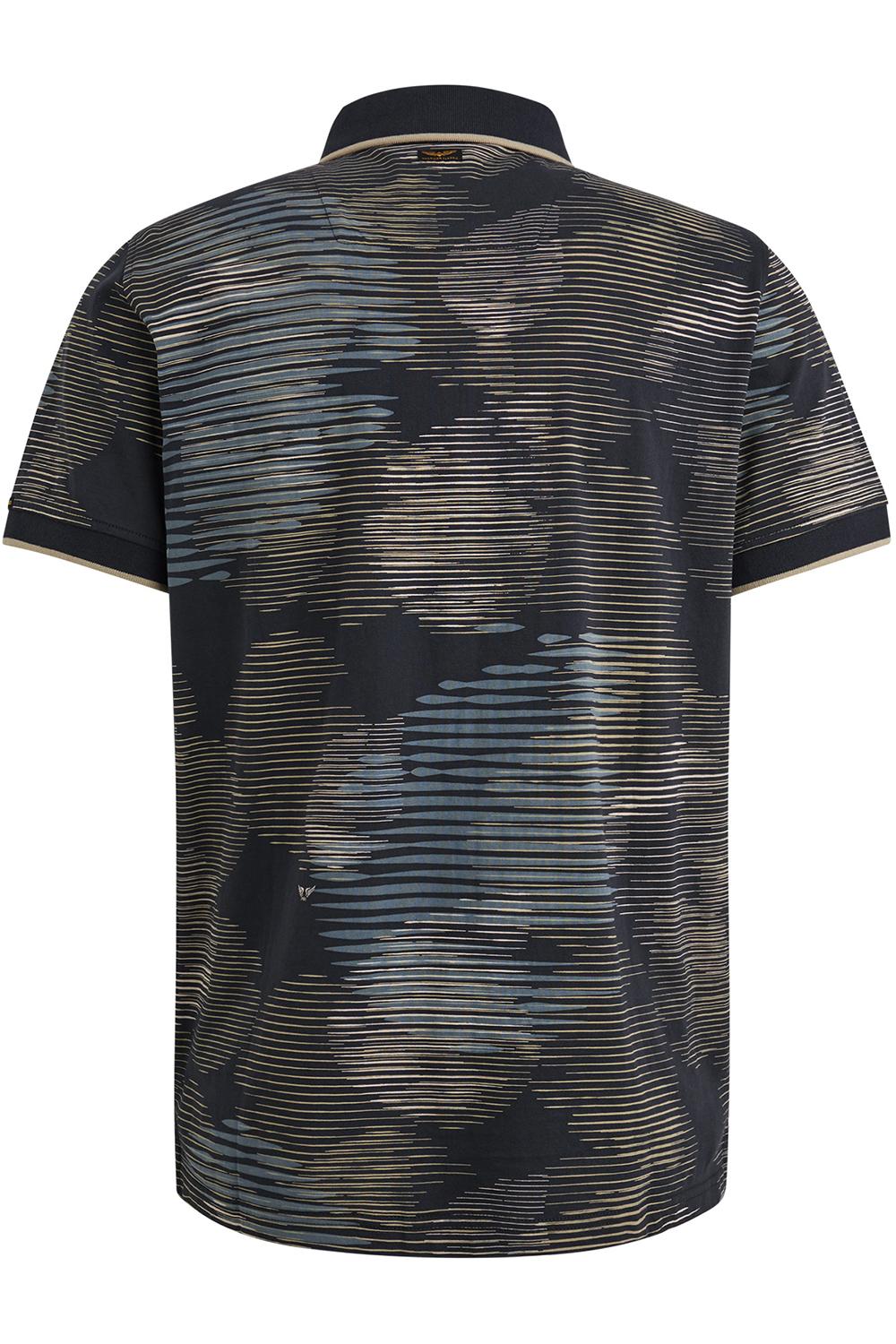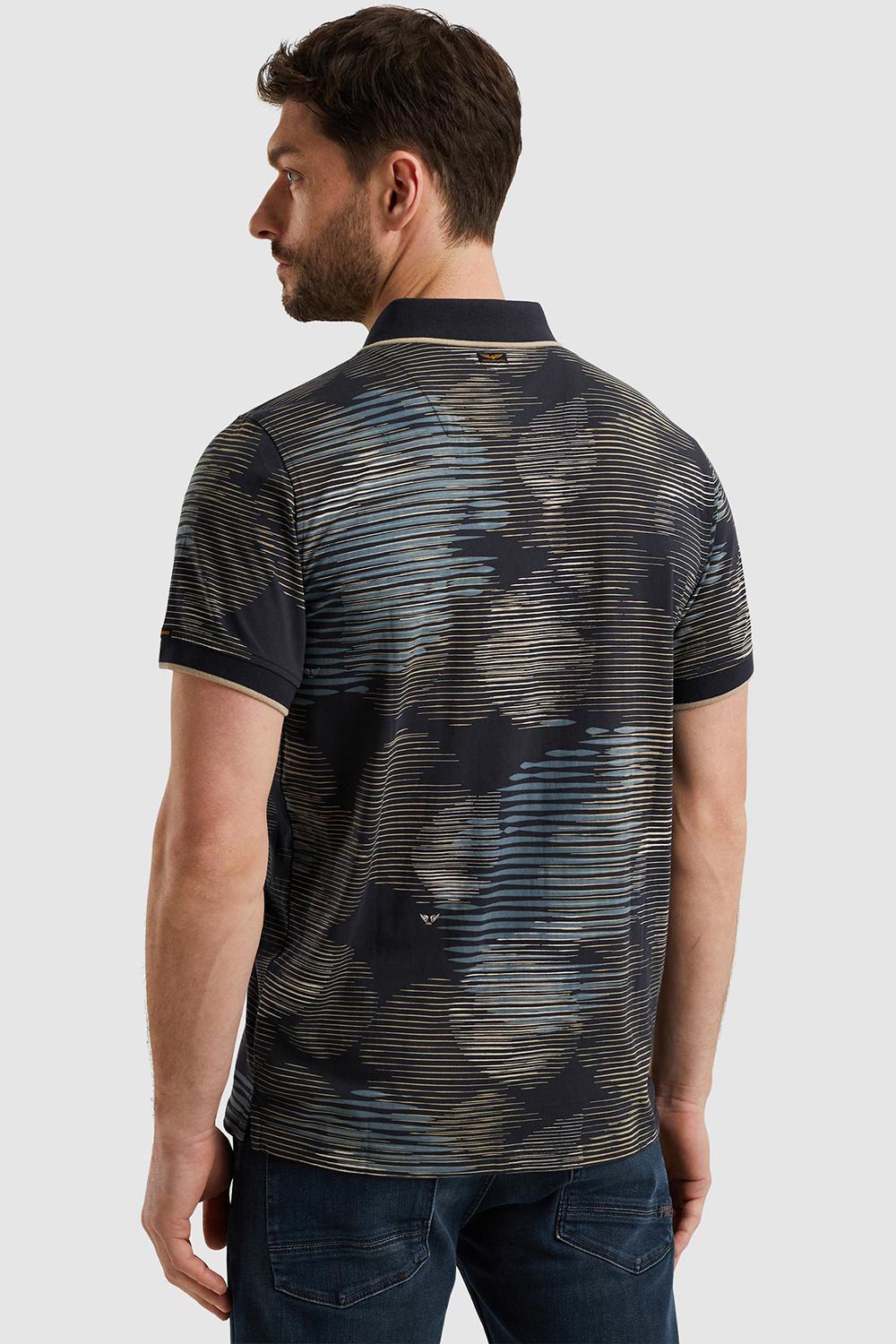 Polo van PME Legend met korte mouwen. Dit item is voorzien van een ribkraag en sluit met een rij knopen aan de bovenkant. De polo heeft een allover grafisch patroon en op borsthoogte het logo van PME Legend.