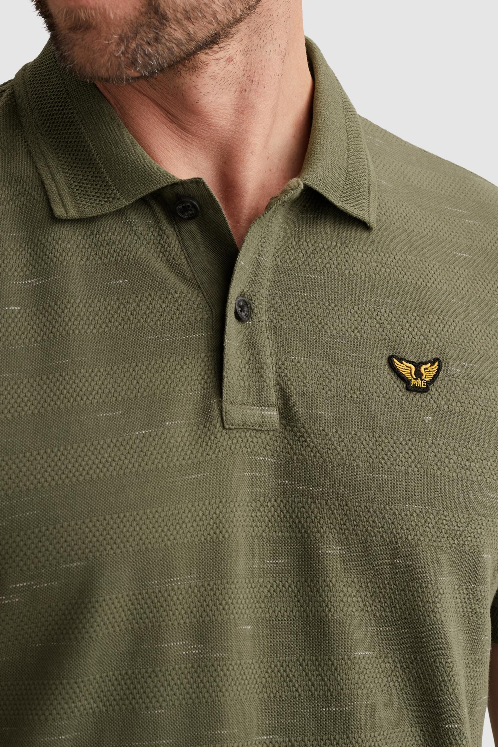 Deze olijfgroene PME Legend polo is een aanwinst voor jouw kledingcollectie. De stof, een mix van 99% katoen en 1% polyester, voelt comfortabel aan en ademt uitstekend, wat het draagcomfort verhoogt. De regular fit zorgt voor een ontspannen pasvorm, ideaal voor casual dagen. De kenmerkende rib kraag en knoopsluiting geven de polo een klassieke uitstraling, terwijl de subtiele structuur in de stof net dat extra beetje stijl toevoegt, perfect voor de lente.De veelzijdigheid van deze PME Legend polo maakt hem geschikt voor verschillende situaties. Of je nu een informeel feestje hebt of een ontspannen dag op kantoor, deze polo past er goed bij. Combineer hem met een spijkerbroek voor een relaxte look, of draag hem onder een jas voor meer warmte op koelere dagen. De korte mouwen en normale lengte zorgen ervoor dat je vrijheid van beweging hebt, terwijl de subtiele badge op de borst een stoer accent geeft aan je outfit.