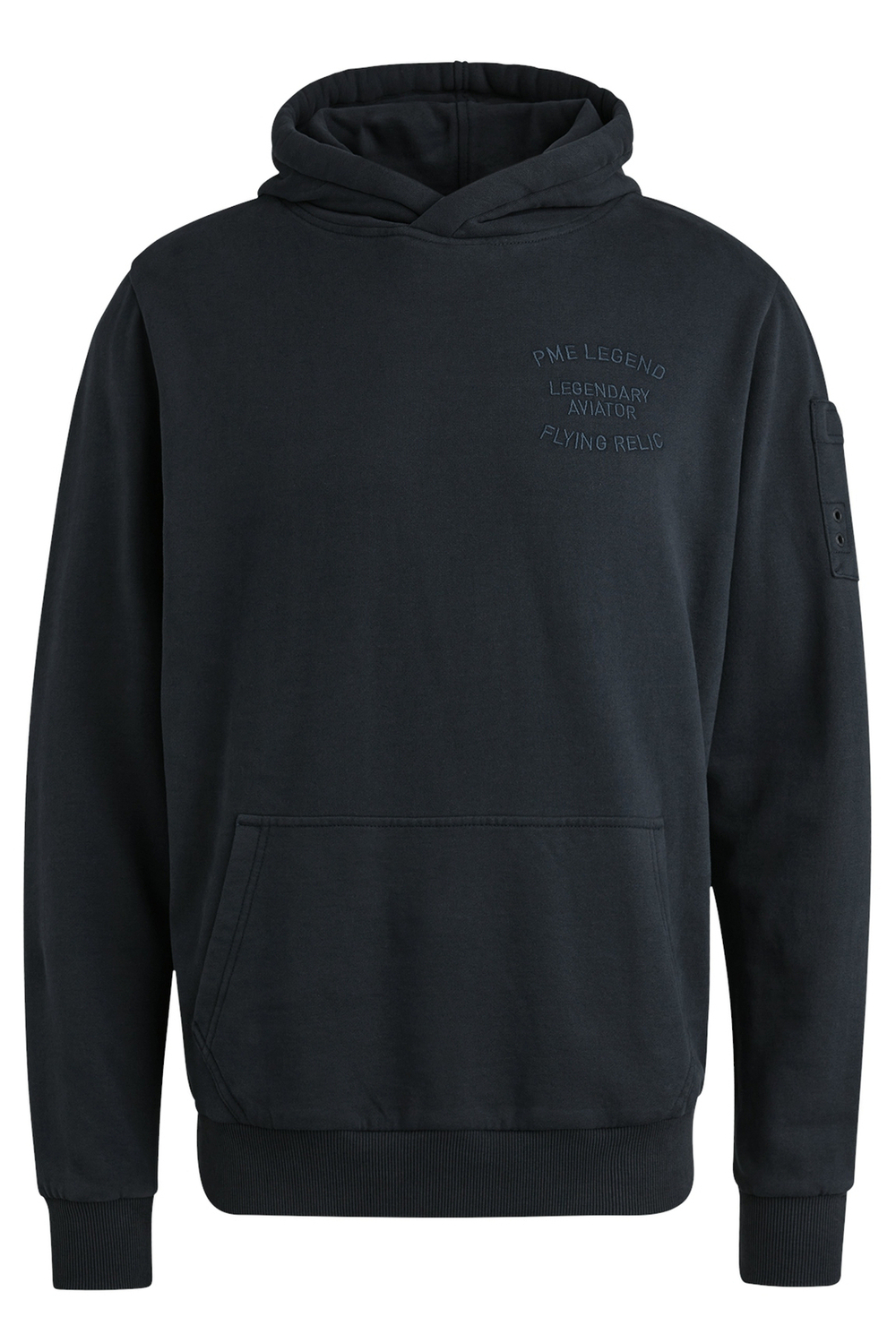 Hoodie van PME Legend met lange mouwen. Deze sweater heeft een kangoeroezak en is voorzien van een capuchon. Op borsthoogte is tekst geborduurd.