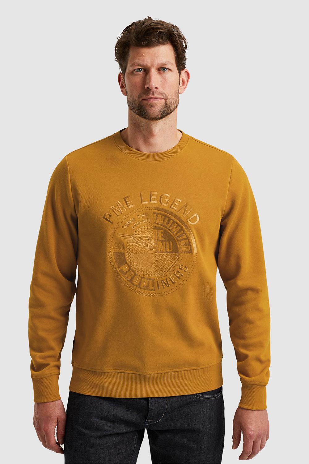 Sweater van PME Legend met ronde hals. Dit model heeft lange mouwen. Op borsthoogte is het logo van PME Legend geborduurd. De sweater is afgewerkt met ribgebreide boorden.