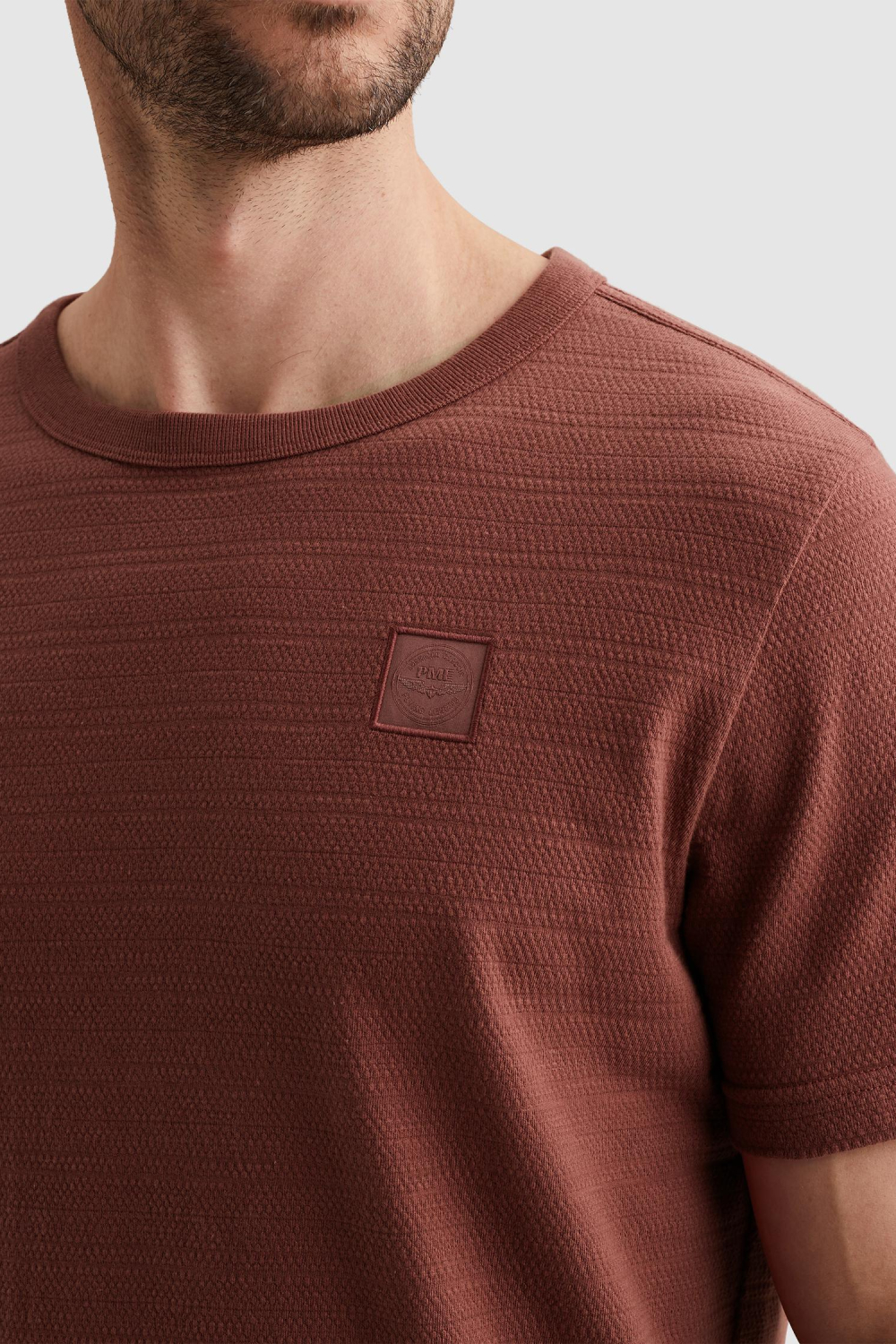 Dit casual T-shirt van PME Legend, uitgevoerd in een uniek gestructureerd patroon, is een must-have voor je lente garderobe. Gemaakt van 100% katoen, biedt het een comfortabel en ademend gevoel, ideaal voor dagelijks gebruik. De warme bruine tint zorgt voor een stijlvolle, natuurlijke uitstraling. Met een ronde hals en korte mouwen is dit T-shirt perfect voor een ontspannen dag. De PME Legend badge op de borst geeft het geheel een subtiele, herkenbare touch. De regular fit pasvorm van dit T-shirt maakt het een veelzijdig kledingstuk dat moeiteloos te dragen is bij allerlei gelegenheden. Of je nu een dagje de stad in gaat of thuis ontspant, het past bij elke setting. Combineer het met je favoriete jeans voor een casual look, of met een short als het wat warmer is. Het T-shirt biedt niet alleen stijl, maar ook langdurig comfort, elke keer dat je het draagt.
