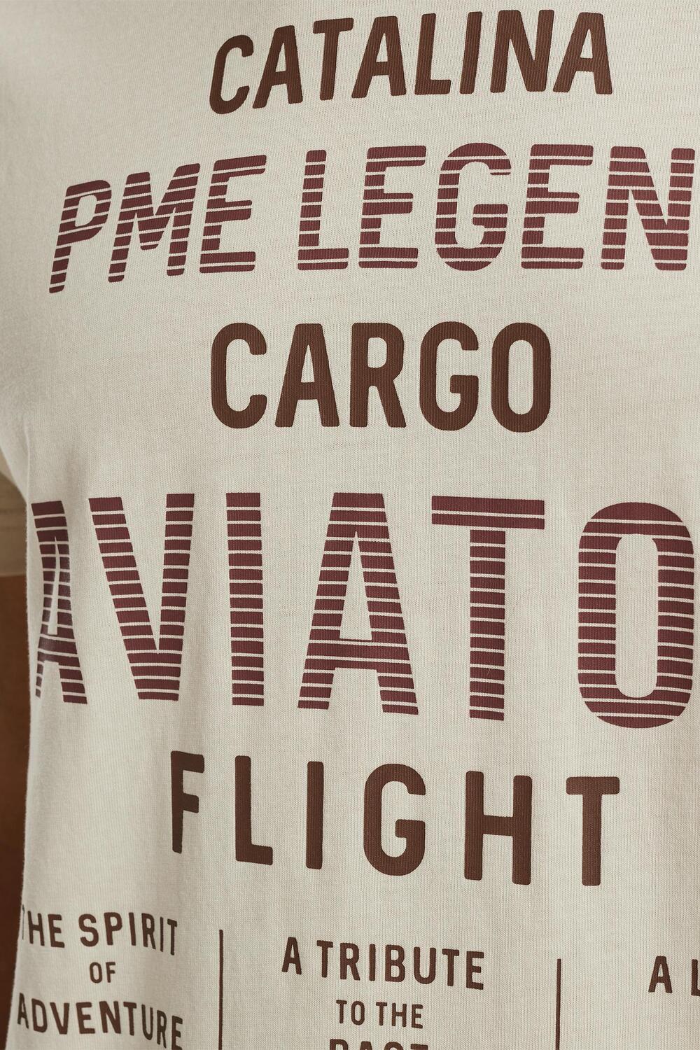 Dit casual T-shirt van PME Legend is een comfortabele keuze voor elke dag. Het T-shirt heeft een ronde hals en korte mouwen, waardoor het perfect is voor de lente. Gemaakt van 100% katoen, biedt het een zachte en duurzame stof die prettig aanvoelt op de huid. Het opvallende ontwerp met teksten zoals "Catalina," "Cargo" en "Aviator Flight" geeft het een stoere uitstraling en maakt het gemakkelijk om je casual look een unieke twist te geven. Combineer het met je favoriete jeans of shorts voor een moeiteloze stijl. Met de regular fit pasvorm en normale lengte valt dit PME Legend T-shirt op een flatterende manier. Of je nu een dagje uit gaat of ontspannen thuis bent, dit T-shirt is een veelzijdige aanvulling op je garderobe. De subtiele PME Legend branding op de zoom versterkt de klassieke touch van dit kledingstuk. Ideaal voor alledaagse avonturen en voor wie houdt van een comfortabele en stijlvol gewaad.