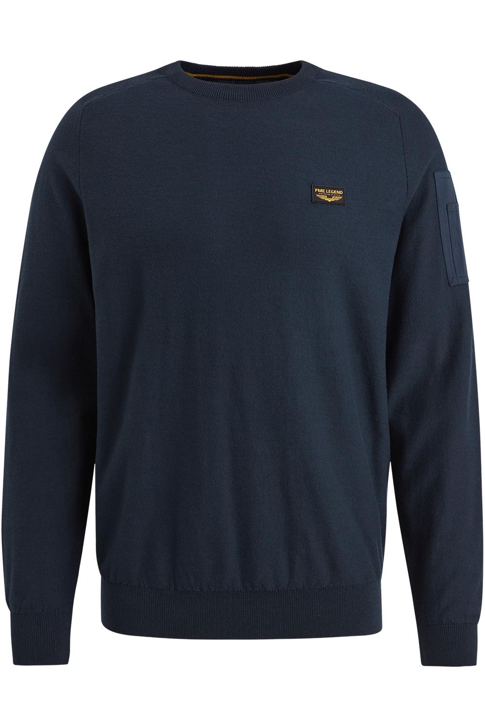 Deze PME Legend trui is een stijlvolle keuze voor elke garderobe. De regular fit pasvorm in combinatie met de zachte 100% biologische katoen maakt deze trui niet alleen comfortabel maar ook een duurzame keuze. Met een klassieke ronde hals en lange mouwen straalt de trui een ontspannen en toch verzorgde uitstraling uit. Het subtiele PME Legend logo op de borst geeft het geheel een stoere twist, terwijl de fijne textuur zorgt voor een moderne look. Deze trui is ideaal voor een casual dag op kantoor of een ontspannen weekendactiviteit. Het diepe blauw is makkelijk te combineren met zowel een nette pantalon als een casual jeans. Dankzij de normale lengte kun je de trui veelzijdig toepassen in verschillende outfits en situaties. Met deze trui kies je voor een duurzame basis die niet alleen modieus is, maar ook comfortabel. Voeg deze tijdloze klassieker toe aan je collectie en geniet van het kwaliteit en de stijl van PME Legend.