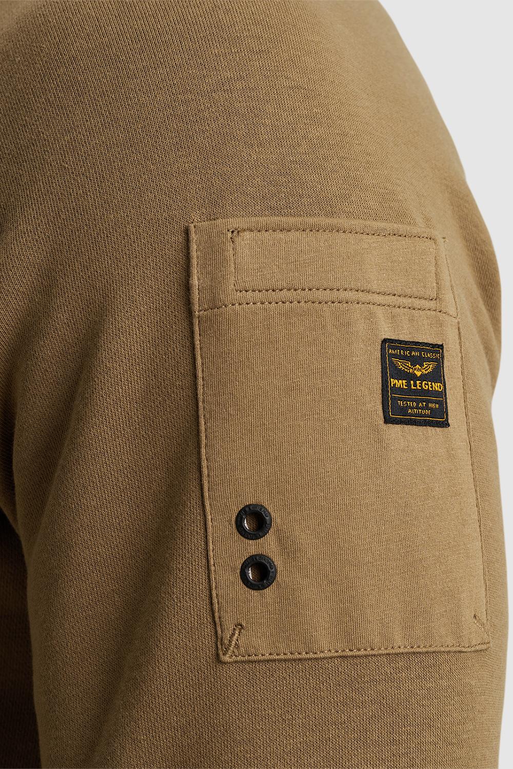Dit PME legend sweatshirt met lange mouwen is gemaakt van 85% katoen met 15% polyester. De binnenkant van de sweater is gebrushed. Op de mouw is een flight pocket gestikt en een logo op borsthoogte.