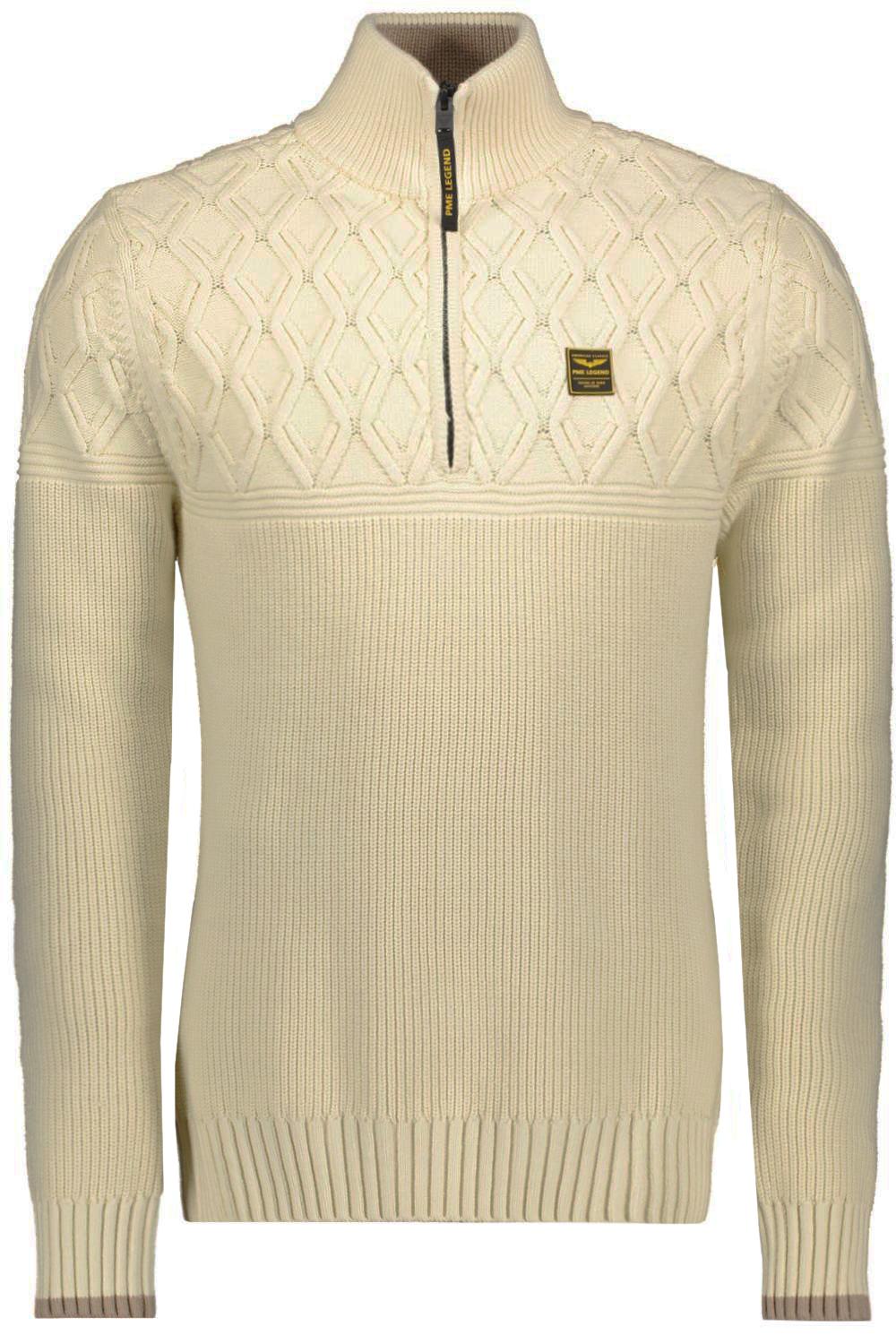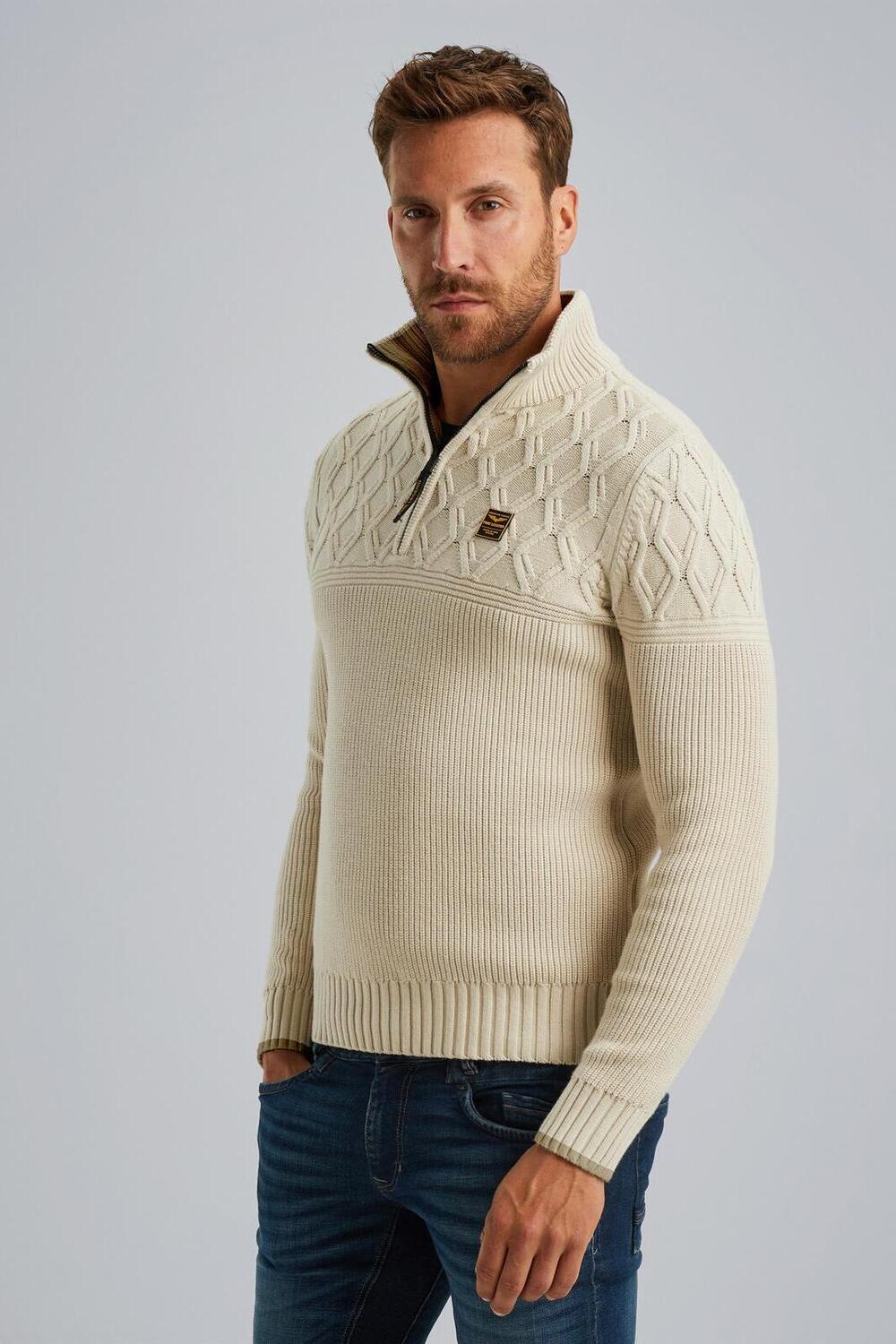 Trui van PME Legend met lange mouwen. Dit item is voorzien van een highneckkraag en heeft een korte ritssluiting. De trui is allover gestructureerd en afgewerkt met ribgebreide boorden. Op borsthoogte zit het logo van PME Legend.
