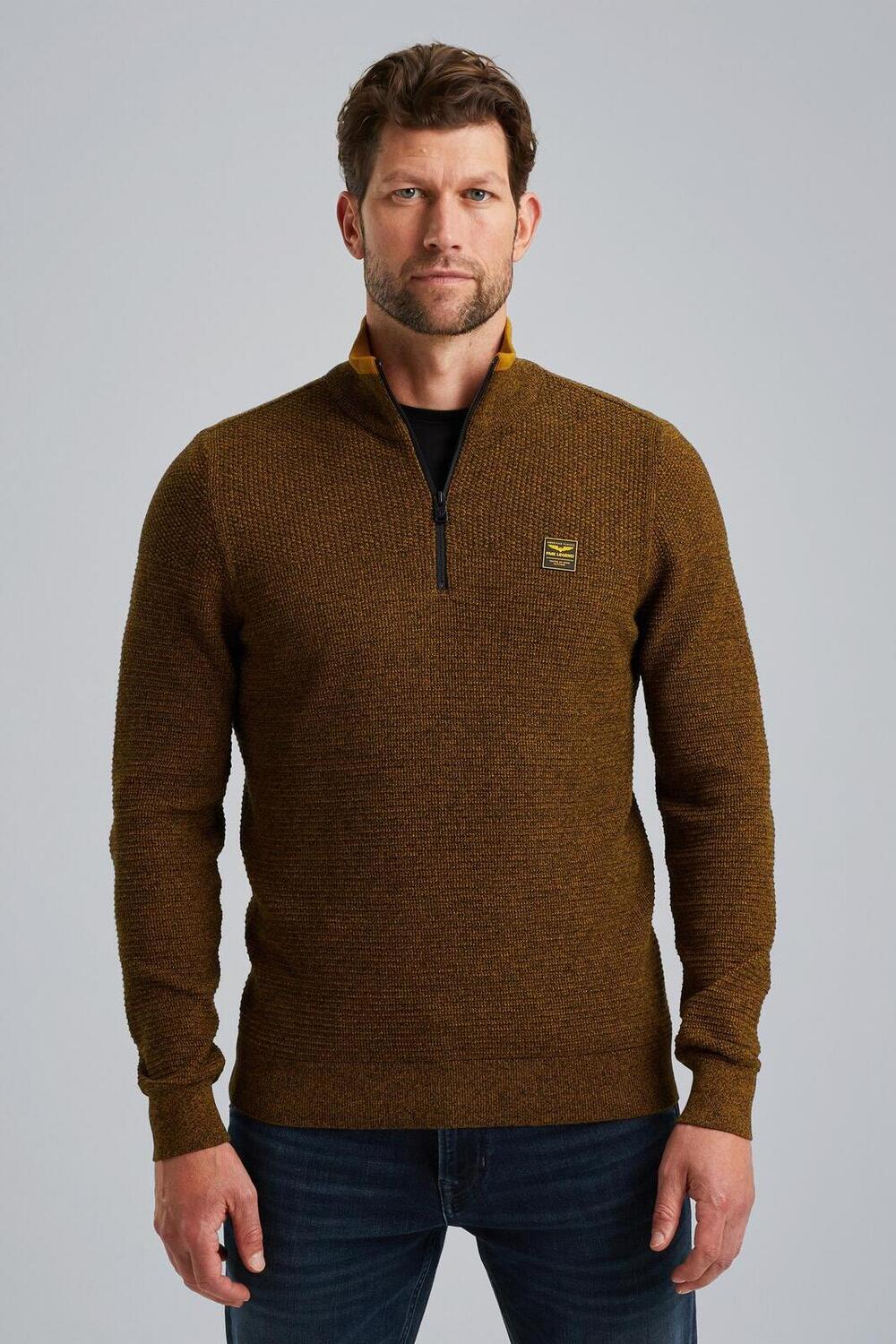 Gestructureerde trui van PME Legend met halve rits. Dit item heeft lange mouwen en is voorzien van een highneckkraag. Deze trui is afgewerkt met ribgebreide boorden. Op borsthoogte is het logo van PME Legend geplaatst.