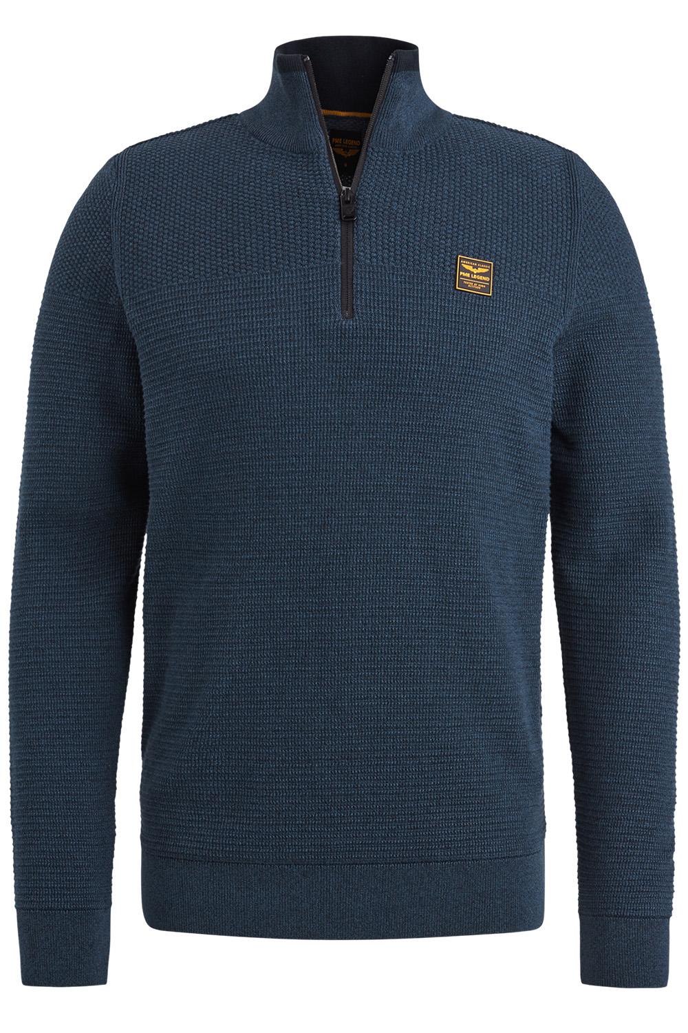 Gestructureerde trui van PME Legend met halve rits. Dit item heeft lange mouwen en is voorzien van een highneckkraag. Deze trui is afgewerkt met ribgebreide boorden. Op borsthoogte is het logo van PME Legend geplaatst.