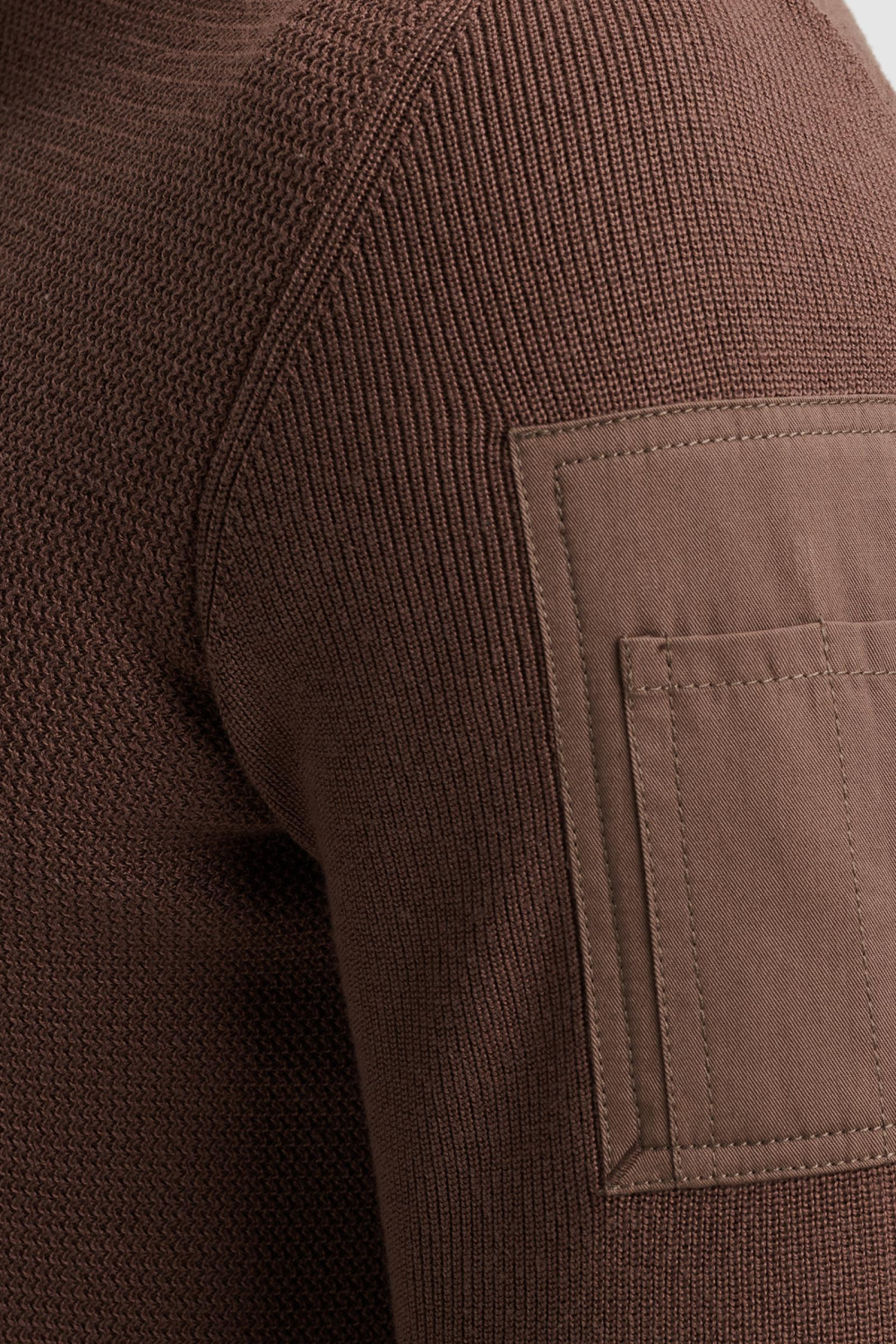 De PME Legend trui uit de knitwear collectie biedt een subtiele balans tussen stijl en comfort. Deze regular fit trui met structuurpatroon heeft een hoge kraag met ritssluiting die je makkelijk kunt aanpassen aan het weer. De rijke bruine kleur, fabrikant kleur 8203, maakt het een veelzijdig kledingstuk voor de herfstdagen. De combinatie van 50% katoen en 50% acryl zorgt voor aangename zachtheid en warmte, ideaal voor buitenactiviteiten of een ontspannen avondje binnen. Met zijn lange mouwen en normale lengte is deze PME Legend trui perfect voor zowel casual als iets nettere gelegenheden. De opvallende patch op de mouw voegt een stoer detail toe aan het geheel. Draag de trui met een jeans voor een alledaags stijlvol ensemble, of combineer hem met een nette broek voor informele bijeenkomsten. Deze trui is niet alleen een praktische keuze, maar ook een stijlvolle toevoeging aan je garderobe.