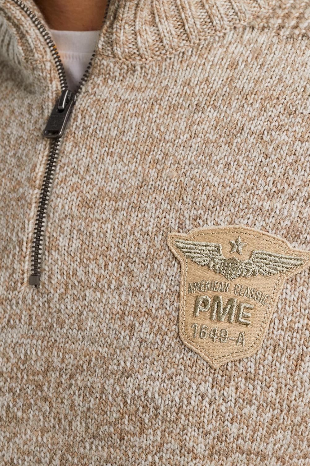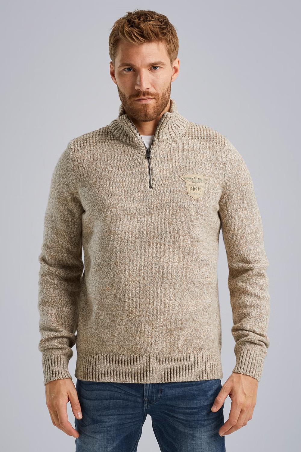 Trui van PME Legend met lange mouwen. Dit item is voorzien van een high neck kraag en heeft een halve ritssluiting. De trui heeft een allover gestructureerd patroon en op de linkerborst zit een badge van PME Legend. Het item is afgewerkt met ribgebreide boorden.