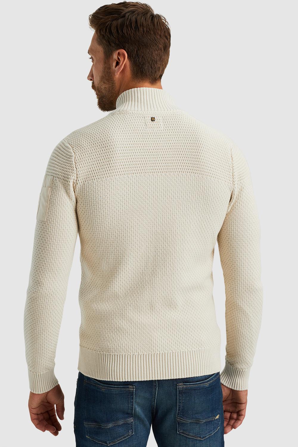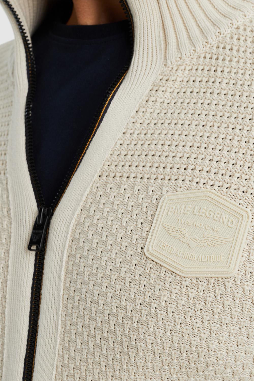 Vest van PME Legend met lange mouwen. Dit item is voorzien van een highneckkraag en sluit met een rits. Het vest is afgewerkt met ribgebreide boorden en heeft een allover gestructureerd patroon. Aan de voorkant zitten twee steekzakken en op de linker mouw een klein zakje.
