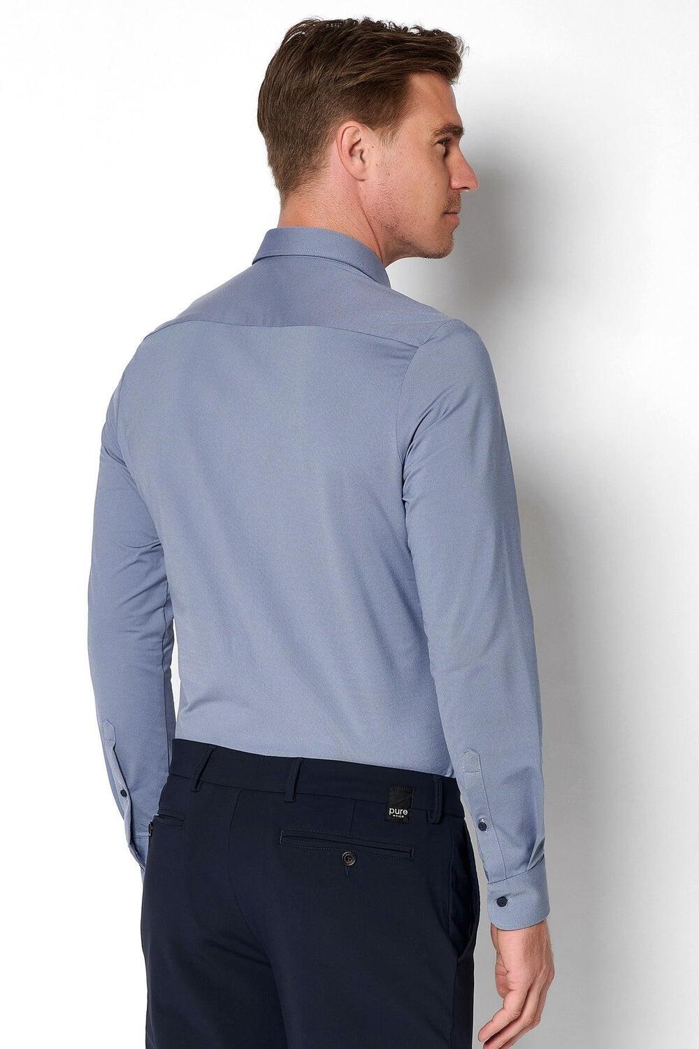 • Pure H. Tico blauwe heren overhemd | Model achteraanzicht