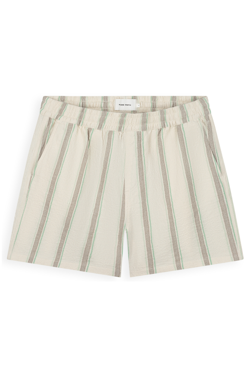 Deze ecru gestreepte korte broek van Pure Path is een frisse toevoeging aan je zomergarderobe. Gemaakt van 100% katoen, biedt deze broek zowel comfort als stijl tijdens warme dagen. De regular fit en de elastische boord zorgen voor een ontspannen en gemakkelijke pasvorm, ideaal voor casual gelegenheden. De subtiele strepen geven een moderne twist aan het klassieke design, waardoor deze short veelzijdig te combineren is met je favoriete T-shirts en overhemden. Met praktische steekzakken is deze korte broek functioneel en modieus tegelijk. Of je nu een dag op het strand doorbrengt of een wandeling door de stad maakt, deze broek is de perfecte keuze. De regular waist en de normale lengte bieden een traditionele uitstraling zonder in te boeten op comfort. Combineer deze tijdloze Pure Path korte broek met lichtgekleurde sneakers of sandalen voor een moeiteloos zomerse look. Laat je stijl spreken met deze stijlvolle en veelzijdige short.