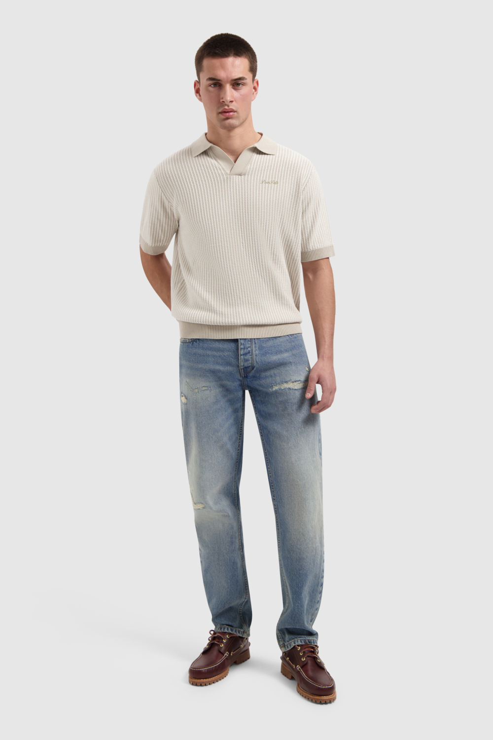 Deze stijlvolle polo van Pure Path in de elegante kleur 46 SAND is een veelzijdige toevoeging aan elke herengarderobe. De polo is vervaardigd uit 100% katoen en biedt daardoor een zacht en comfortabel gevoel. Het structuurpatroon voegt een subtiel detail toe dat de sportieve uitstraling verfijnt. De puntkraag en de normale lengte maken het een geschikte keuze voor zowel dagelijks gebruik als meer geklede gelegenheden. De regular fit zorgt ervoor dat het een tijdloze pasvorm heeft die iedereen goed staat. Met zijn korte mouwen is deze polo ideaal voor de lente, en kan hij makkelijk gecombineerd worden met zowel een casual jeans als een nette broek. Of je nu een relaxte dag hebt of naar een informele bijeenkomst gaat, deze polo biedt altijd nette uitstraling en draaggemak. De knitwear stijl zorgt voor een moderne twist zonder afbreuk te doen aan de klassieke charme van de polo. Voeg dit veelzijdige kledingstuk toe aan je collectie en ervaar het comfort en de stijl die Pure Path te bieden heeft.