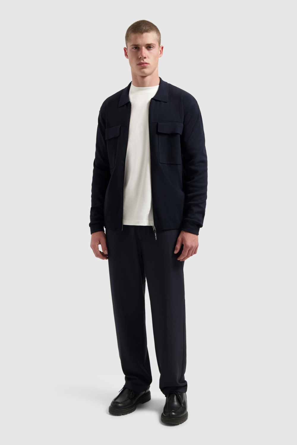 Dit elegante vest voor heren van Pure Path in de kleur 57 DARK NAVY is een stijlvolle aanvulling op je wintergarderobe. Met zijn reguliere pasvorm en lange mouwen biedt het vest optimaal comfort en veelzijdigheid. De puntkraag en ritssluiting geven een moderne touch aan het klassieke ontwerp. Het vest heeft praktische borstzakken, wat niet alleen functioneel is, maar bijdraagt aan de stijlvolle uitstraling van dit kledingstuk. Gemaakt van hoogwaardige knitwear, is dit vest perfect voor verschillende gelegenheden. Of je nu een informele dag op kantoor hebt of gezellig uitgaat, dit vest voegt een casual, maar verfijnde uitstraling toe. Combineer het met een jeans voor een relaxte look, of draag het over een nette pantalon voor een iets formelere outfit. Met zijn normale lengte en warme tinten is dit vest een ideale keuze voor elk winterseizoen.
