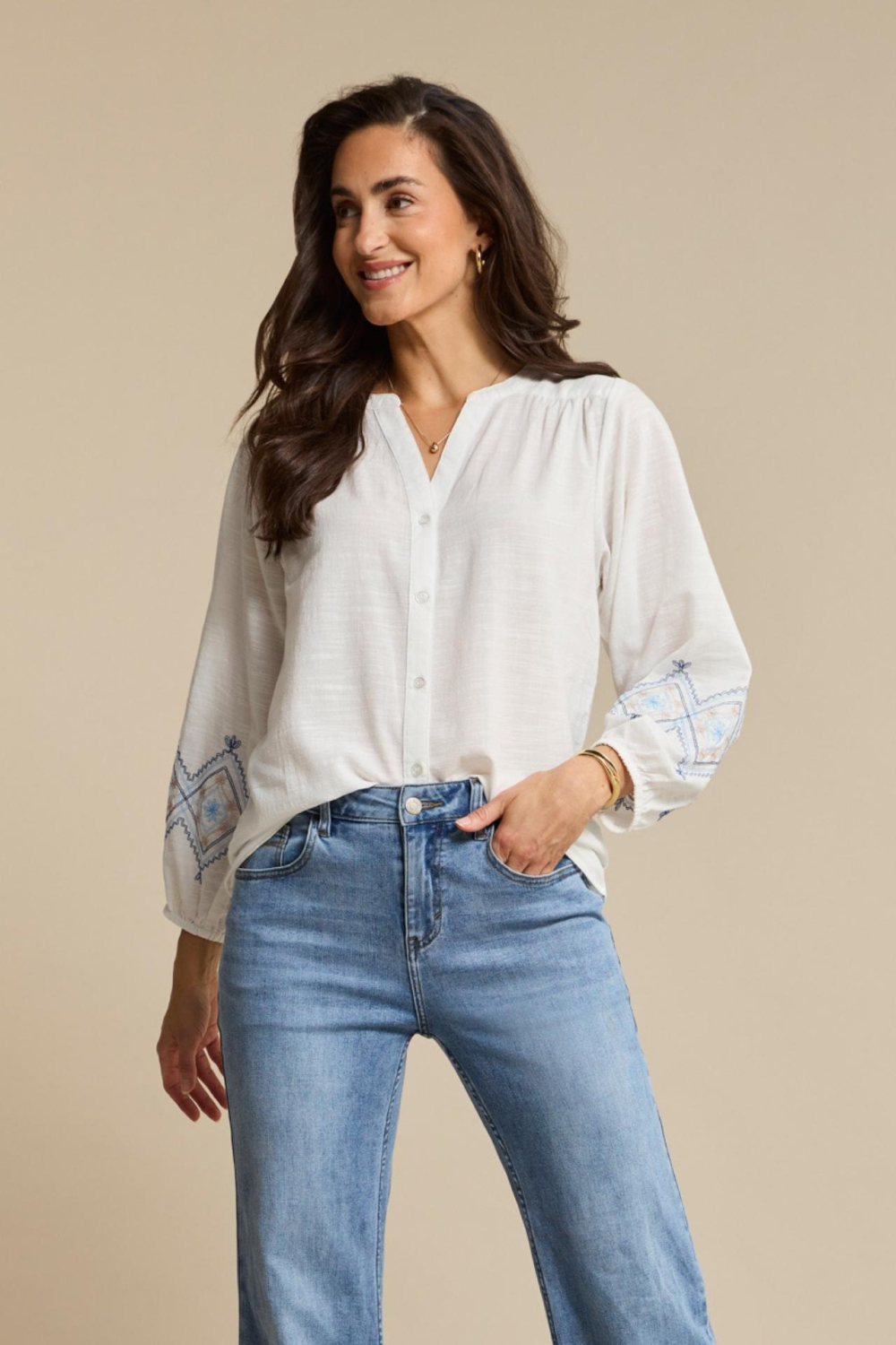Deze Red Button damesblouse in het BLUE MULTI patroon is een stijlvolle keuze voor jouw lente garderobe. Met zijn regular fit en casual stijl, biedt het een comfortabele en ontspannen pasvorm. De grafische details op de 7/8 mouwen geven de blouse een unieke uitstraling. De V-hals en knoopsluiting voegen een subtiele charme toe, waardoor het zowel modieus als veelzijdig is. Dit maakt het ideaal voor verschillende gelegenheden, van een informele lunch tot een middag in het park. De normale lengte en luchtige stof zorgen ervoor dat je je de hele dag comfortabel voelt. De subtiele mix van kleuren in het patroon voegt net dat beetje extra flair toe aan je outfit. Combineer deze blouse met een jeans voor een casual look of kies een nette broek voor een iets formelere gelegenheid. Of je nu een dagje uit plant of een gezellige avond tegemoet gaat, deze blouse is een perfecte match voor elke situatie.