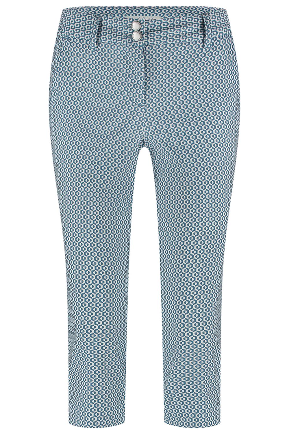 De stijlvolle Red Button broek met grafisch patroon in faded blue is een ideale toevoeging voor je zomergarderobe. Deze damesbroek, met een slim fit pasvorm en driekwart lengte, combineert comfort en stijl dankzij de samenstelling van 60% katoen, 38% polyamide, en 2% elastan. De regular waist zorgt ervoor dat de broek prettig zit, terwijl de knoop- en ritssluiting zorgt voor een praktische touch. De steekzakken voegen een subtiel functioneel detail toe aan het geheel. Het veelzijdige karakter van deze broek maakt het de perfecte keuze voor casual gelegenheden. Combineer het met een luchtige top en sandalen voor een ontspannen dagje uit, of draag het met een nette blouse en sneakers voor een meer gepolijste look. Het subtiele grafische patroon voegt net dat beetje extra flair toe, waardoor je outfit opvalt zonder schreeuwerig te zijn. Of je nu een dagje gaat shoppen of een zomerse middag met vrienden doorbrengt, deze Red Button broek is een betrouwbare en stijlvolle keuze. Meer informatie: Binnenbeenlengte is 51 cm bij maat 36.