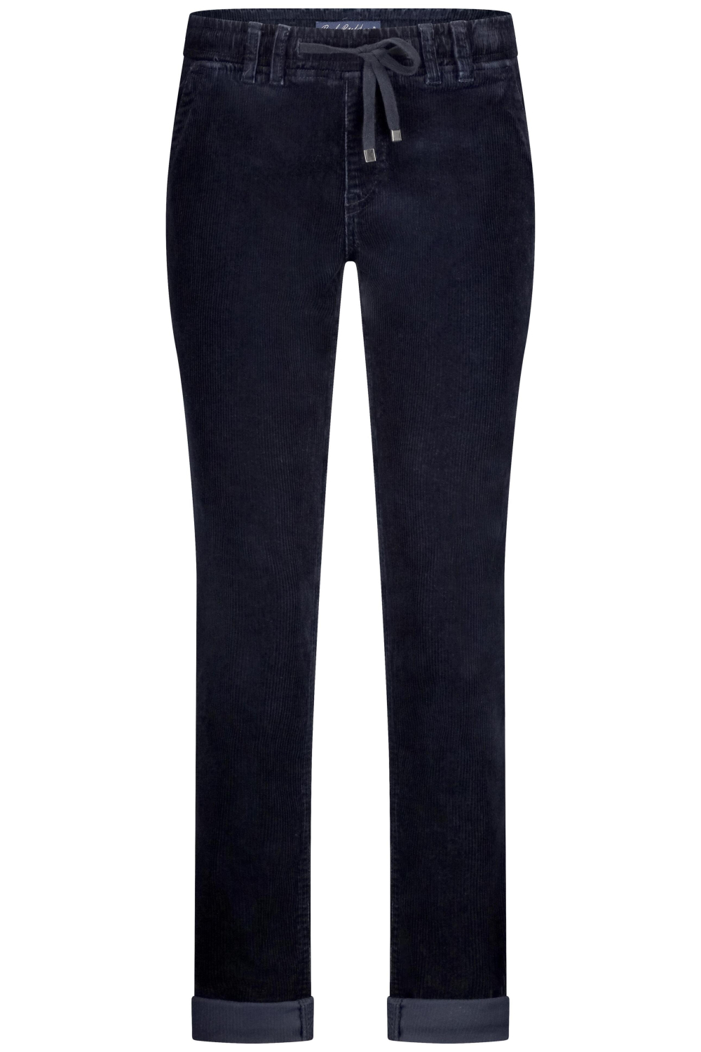 Deze comfortabele navy broek van Red Button voegt een casual flair toe aan je garderobe. Met de subtiele ribstructuur en het zachte materiaal van 98% katoen en 2% elastaan, biedt deze broek een comfortabele en flexibele pasvorm. De hoge taille en de tapered fit creëren een flatterend silhouet dat veelzijdig te stylen is. De elastische boord met drawstring zorgt voor extra draagcomfort, ideaal voor een ontspannen dagje uit of een casual lunchafspraak. De steekzakken voegen een praktisch element toe en de opgerolde boorden geven een eigentijdse twist aan dit tijdloze ontwerp. Deze broeken maken het gemakkelijk om een veelzijdige winterlook samen te stellen. Combineer hem met een warme sweater voor een gezellige outfit of met een nette blouse voor een meer geklede uitstraling. Of je nu de stad ingaat of geniet van een dagje thuis, deze broek biedt stijl en comfort in één. Meer informatie: De binnenbeenlengte is 80 cm bij maat 36.