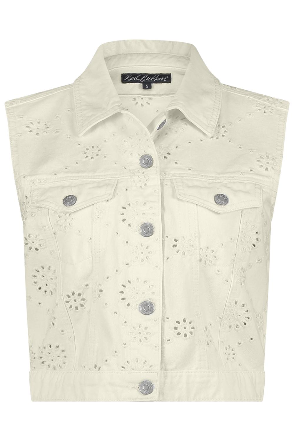Dit denim gilet van Red Button voegt een speelse en stijlvolle touch toe aan jouw zomergarderobe. Gemaakt van 100% katoen, garandeert dit mouwloze vest comfort en adembaarheid tijdens warme dagen. Het ajourpatroon geeft een verfijnde uitstraling, terwijl de klassieke puntkraag en knoopsluiting het een tijdloze charme geven. Met praktische borstzakken is dit gilet niet alleen mooi, maar ook functioneel. Een must voor elke zomerse outfit die net dat beetje extra nodig heeft. Dankzij de regular fit pas je dit gilet moeiteloos bij zowel casual als iets formelere kledingstijlen. Perfect voor een dagje uit aan het strand of een zomeravond op het terras. Draag het over een luchtige blouse voor een frisse, gelaagde look, of simpelweg boven een jurkje voor een nonchalante sfeer. Dit Red Button gilet is veelzijdig en eenvoudig te stylen, waardoor het een onmisbaar item in jouw garderobe is.