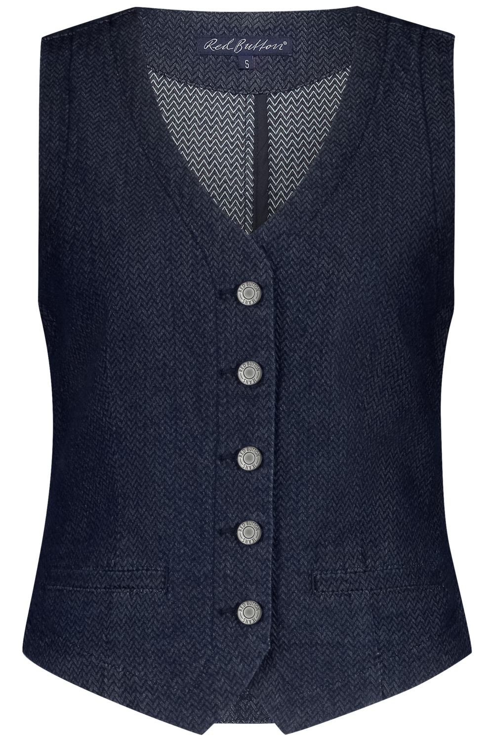 Dit casual gilet van Red Button, uitgevoerd in een elegante donkerblauwe visgraatpatroon, is een prachtige aanvulling voor je herfstgarderobe. Met een regular fit en V-hals biedt dit gilet een comfortabele en stijlvolle uitstraling. Het is vervaardigd uit een zachte mix van 92% katoen, 7% polyester en 1% elastan, wat zorgt voor een prettige pasvorm. De knoopsluiting voegt een klassieke touch toe aan het ontwerp, terwijl het mouwloze karakter perfect is voor gelaagde outfits. Dit gilet is ideaal om toe te voegen aan een casual outfit, of je nu een relaxed dagje uit plant of een informele bijeenkomst hebt. Combineer het met een lichte blouse en jeans voor een moeiteloze, stijlvolle look. Dankzij de normale lengte kun je het gilet probleemloos combineren met diverse kledingstukken. Of je nu op zoek bent naar wat extra warmte of gewoon een stijlvol accent aan je outfit wilt toevoegen, dit gilet is een geweldige keuze voor verschillende seizoenen en gelegenheden.
